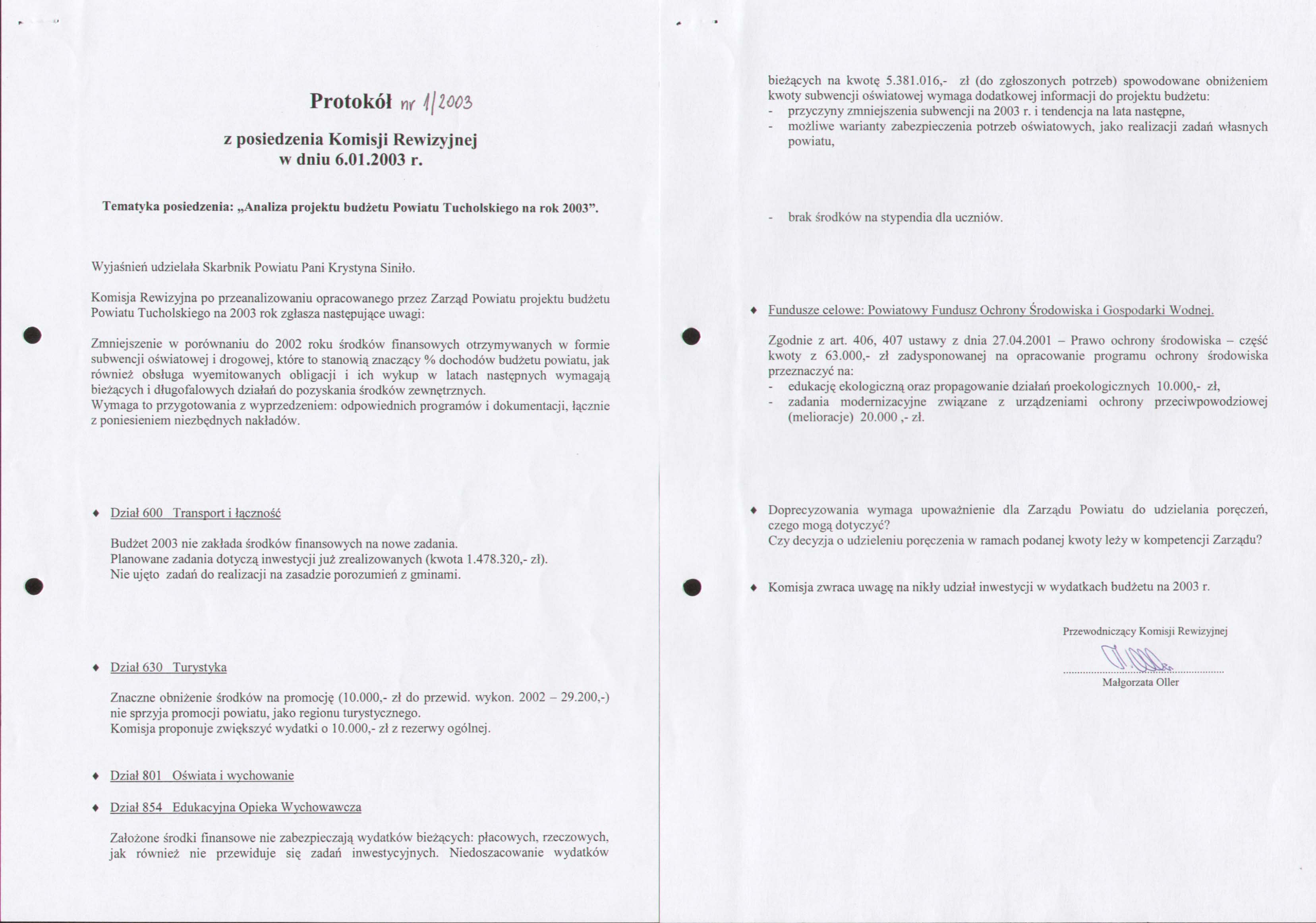 Komisji Rewizyjnej z posiedzenia odbytego w dniu 6 stycznia 2003 r.