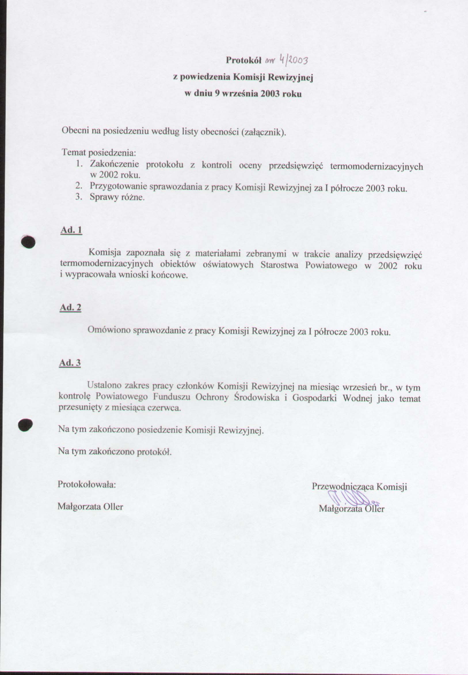 Na tym zakończono protokół.