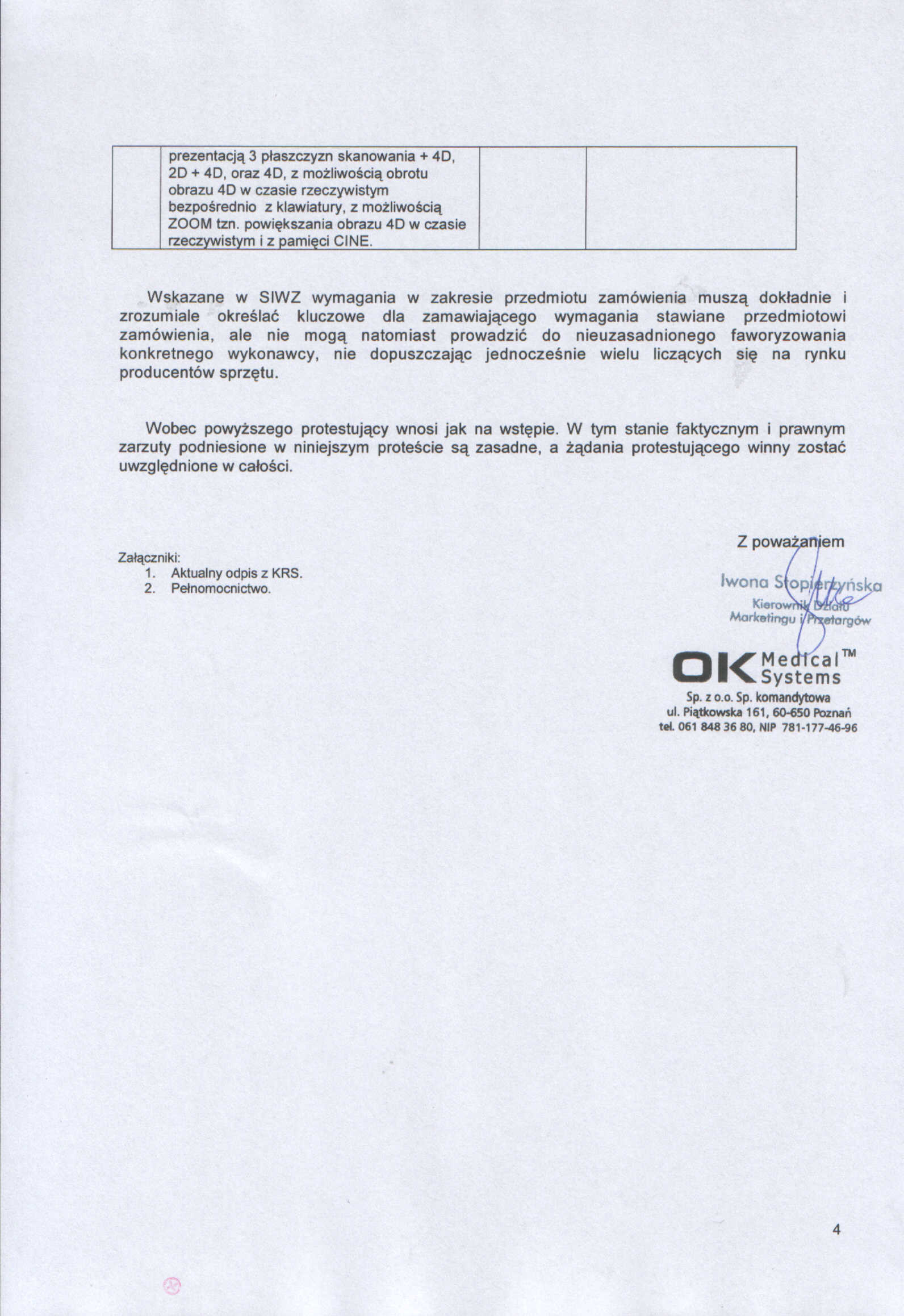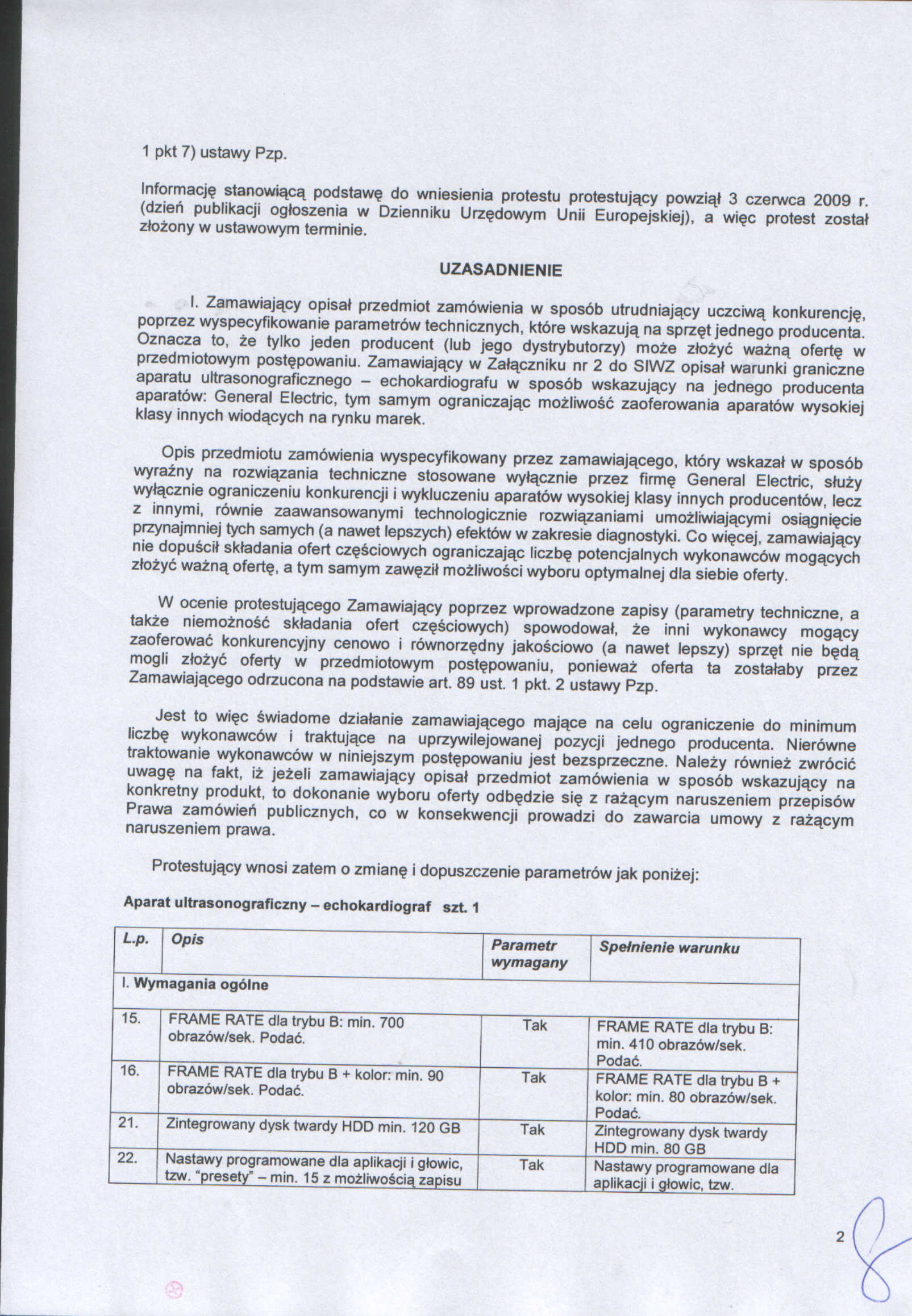 Uzupełnienie do protestu z powodu nie umieszczenia tabelki- parametry wymagane