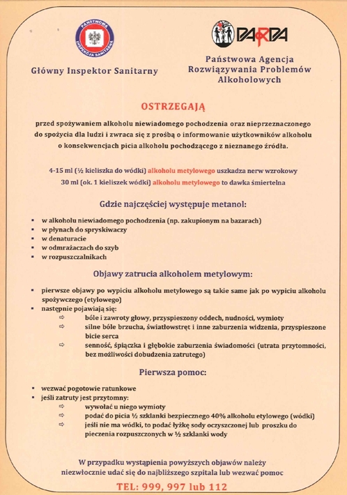 Główny Inspektor Sanitarny i Państwowa Agencja Rozwiązywania Problemów Alkoholowych Ostrzegają