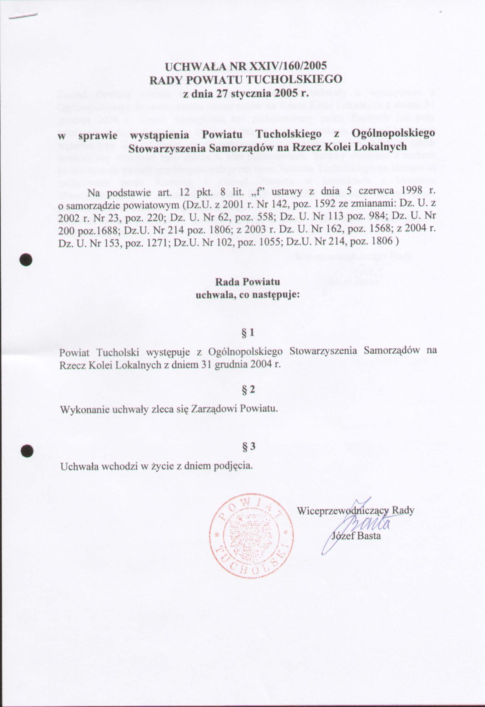 w sprawie wystąpienia Powiatu Tucholskiego z Ogólnopolskiego Stowarzyszenia na Rzecz Kolei Lokalnych