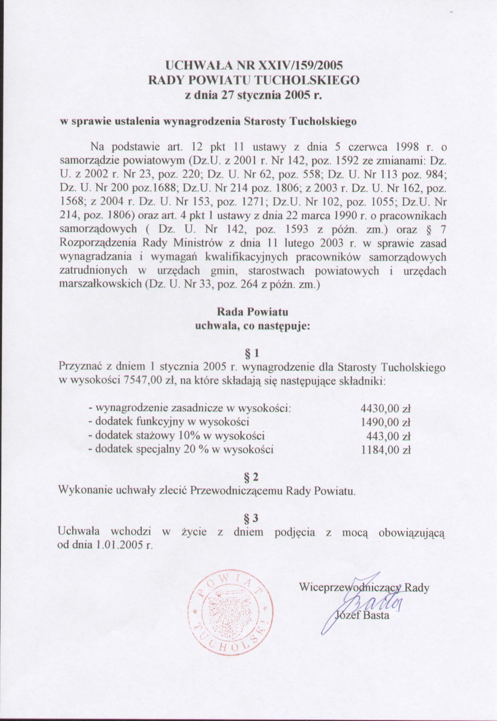 w sprawie ustalenia wynagrodzenia Starosty Tucholskiego