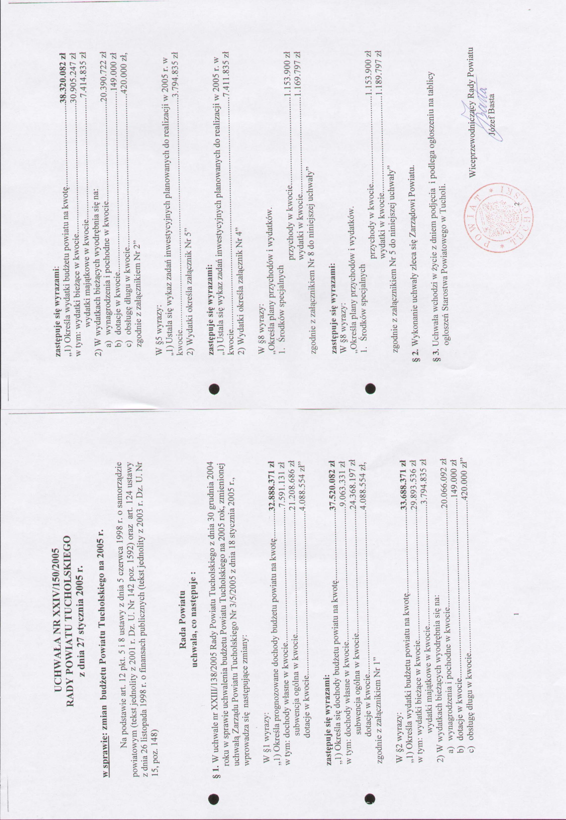 w sprawie zmian budżetu Powiatu Tucholskiego na 2005 r.