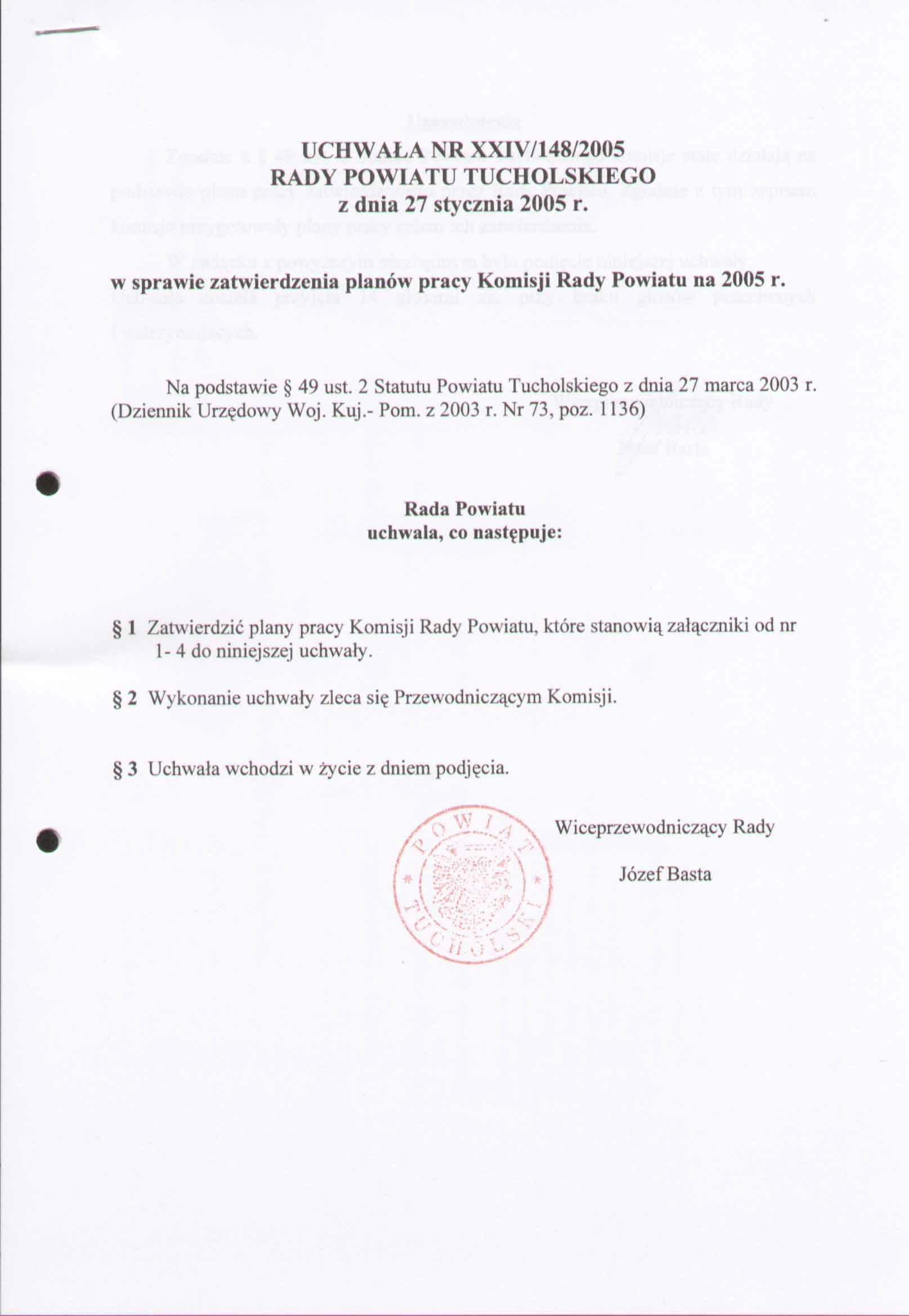 w sprawie zatwierdzenia planów pracy Komisji Rady Powiatu na 2005 r.