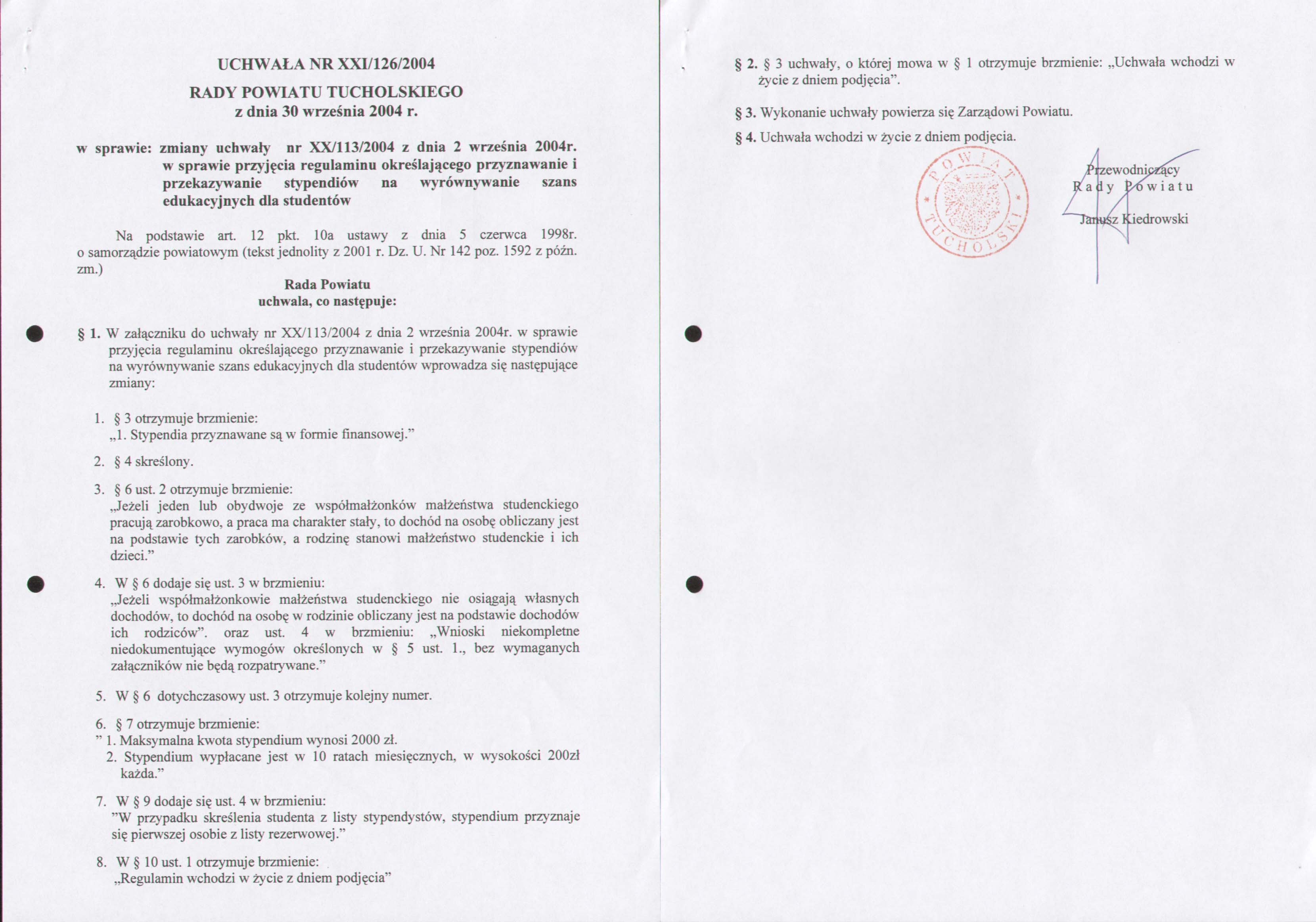 w sprawie zmiany uchwały Nr XX/113/2004 z dnia 2 września 2004 r. w sprawie przyjęcia regulaminu określającego przyznawanie i przekazywanie stypendiów na wyrównywanie szans edukacyjnych dla studentów