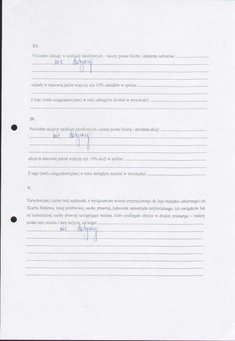 Oświadczenie majątkowe Urszuli Piotrowskiej - dyrektor Zespołu Szkół Ogólnokształcących