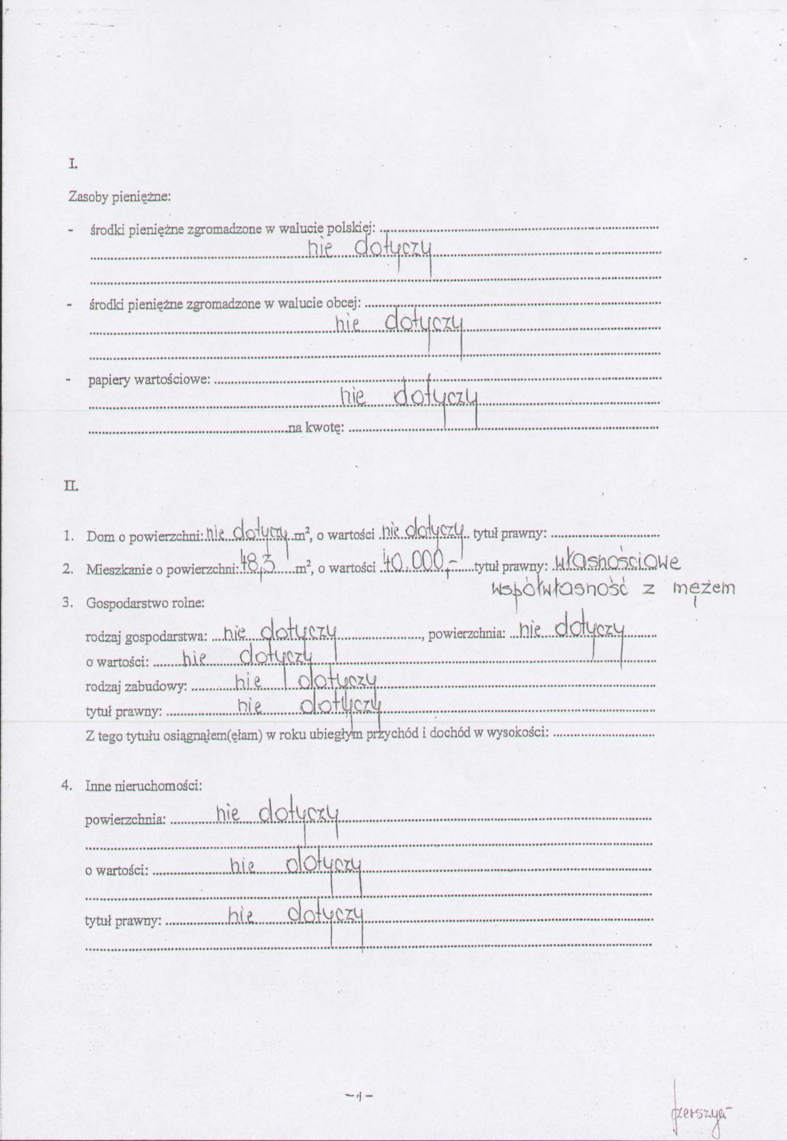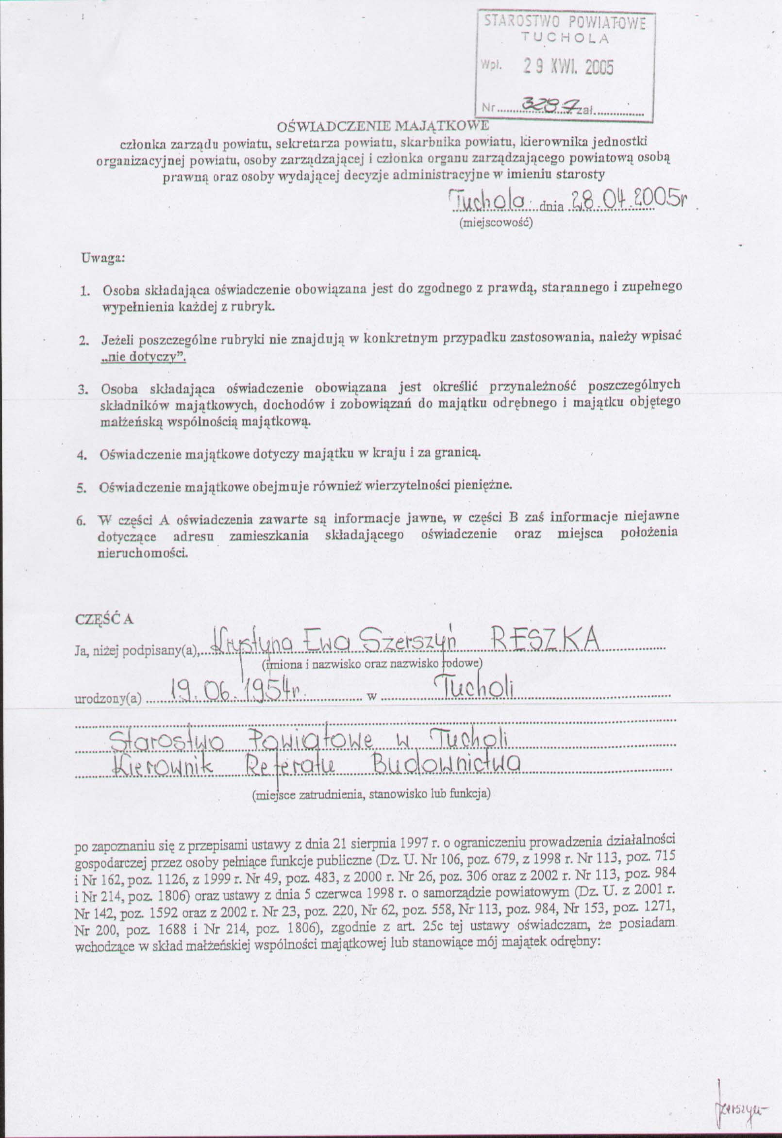 Oświadczenie majątkowe Krystyny Szerszyń - Kierownika Referatu Komunikacji