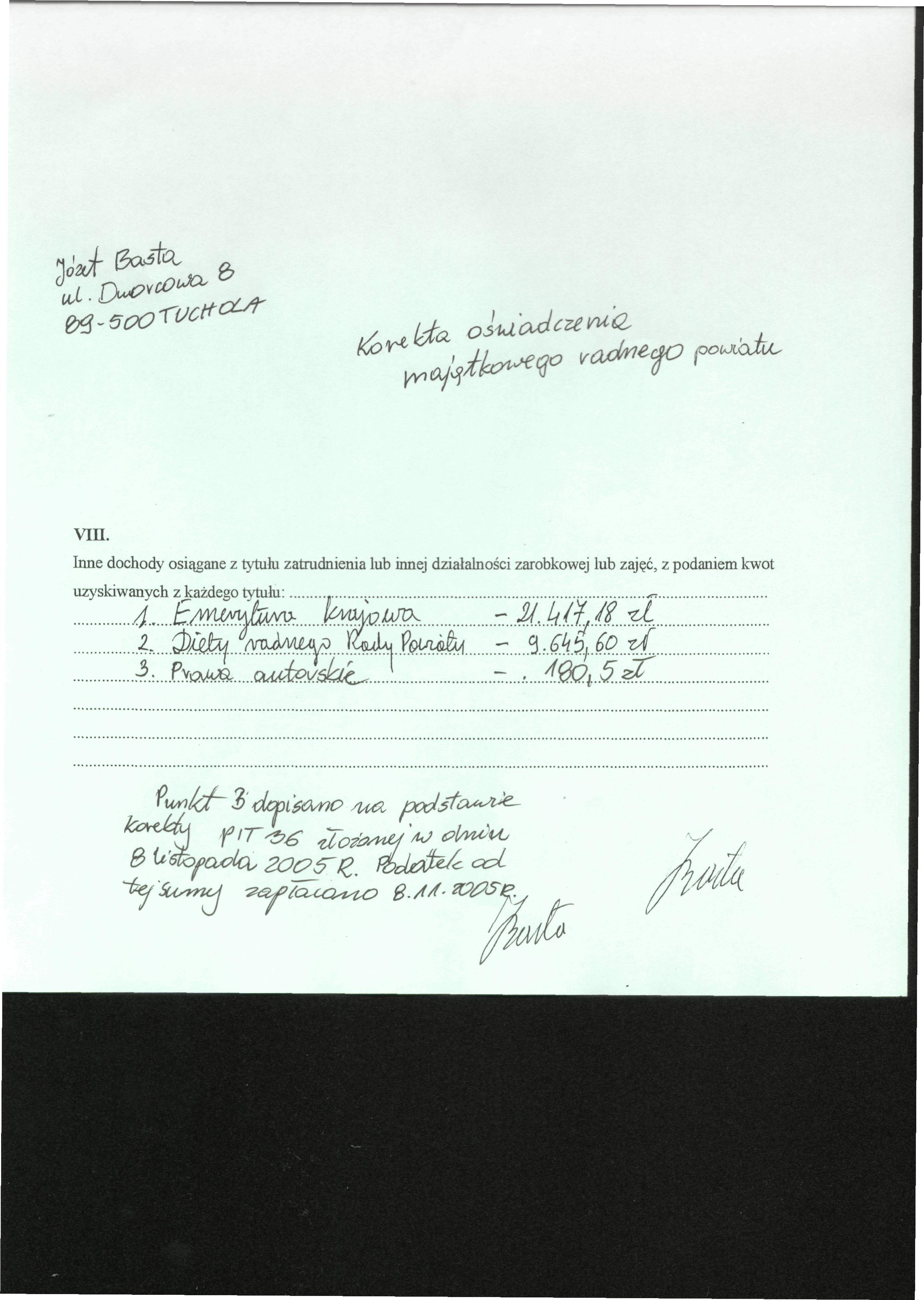 Oświadczenie majątkowe radnego Józefa Basty |
