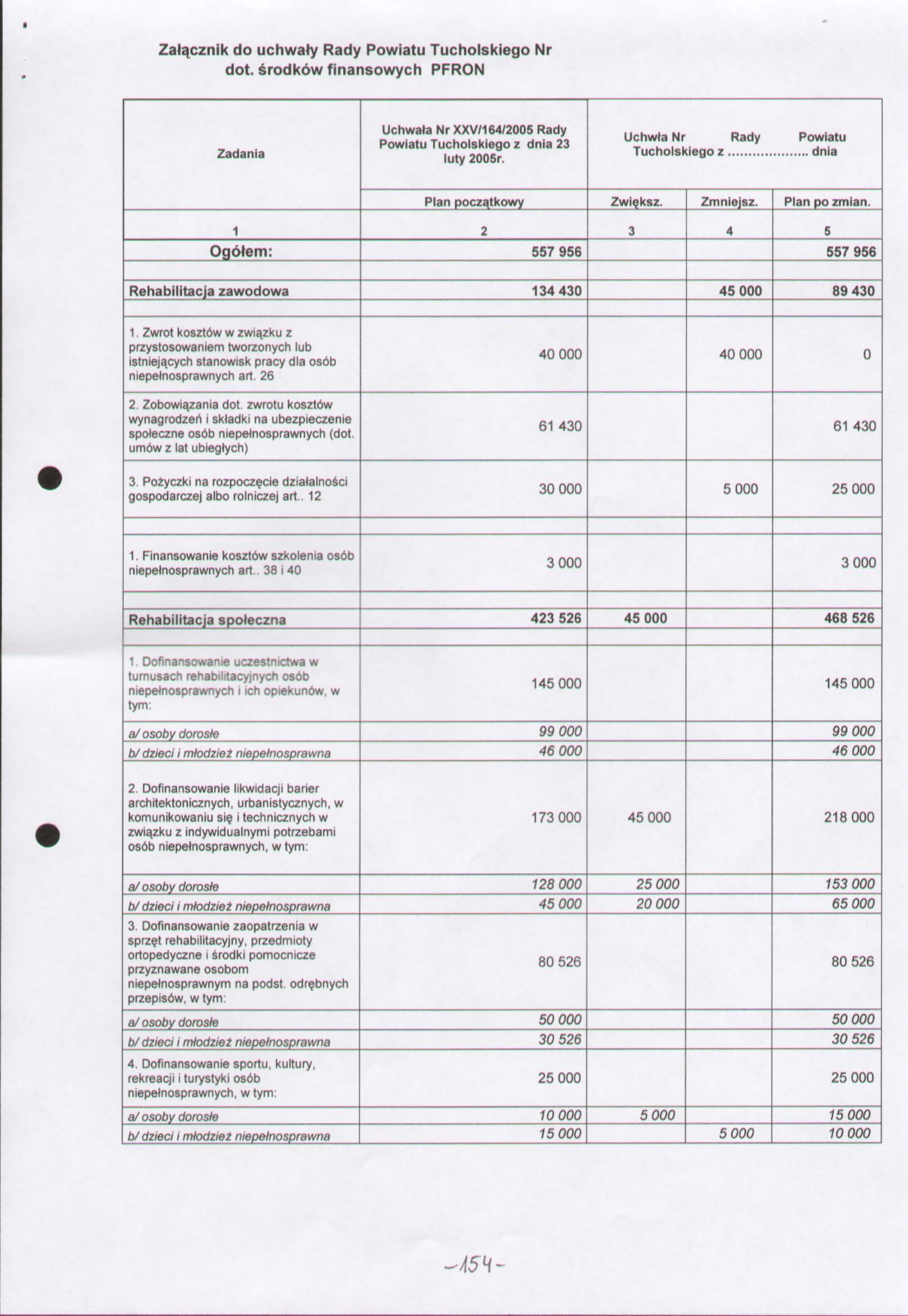 13. Podjęcie uchwały w sprawie zmiany uchwały Nr XXV/164/2005 Rady Powiatu Tucholskiego z dnia 23.02.2005 r. w sprawie określenia zadań i wysokości środków finansowych z Państwowego Funduszu Rehabilitacji Osób Niepełnosprawnych na zatrudnienie i rehabilitację społeczną osób niepełnosprawnych.