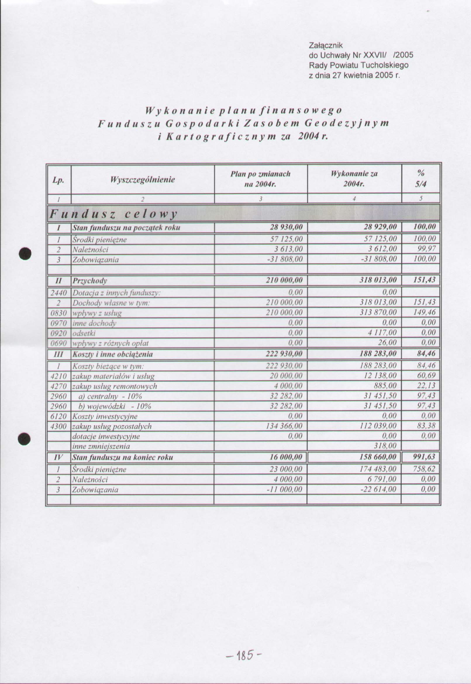 15. Podjęcie uchwały w sprawie zatwierdzenia sprawozdania z wykonania zadań i gospodarowania Powiatowym Funduszem Gospodarki Zasobem Geodezyjnym i Kartograficznym za 2004 r.