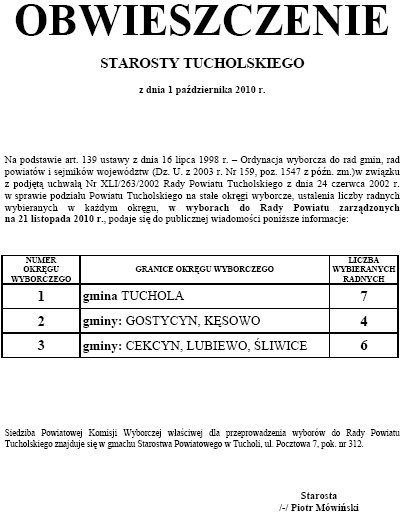 | osoba odpowiedzialna: | Starosta Tucholski | ||