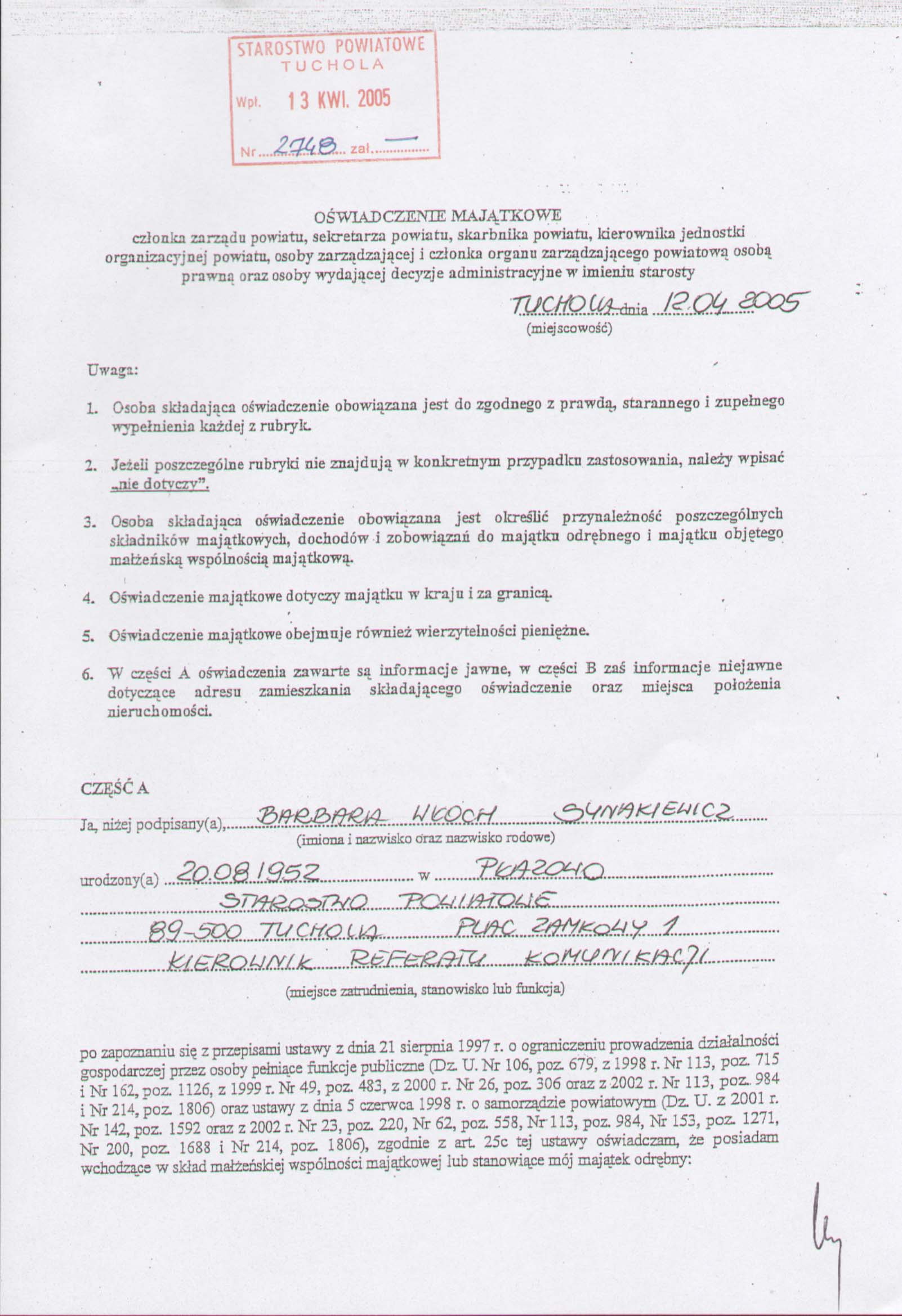 | utworzono: | data: 09:20, 18.05.2007 | przez: Dorota Słupińska | Oswiadczenie majątkowe Barbary Włoch - Kierownika Referatu Komunikacji |