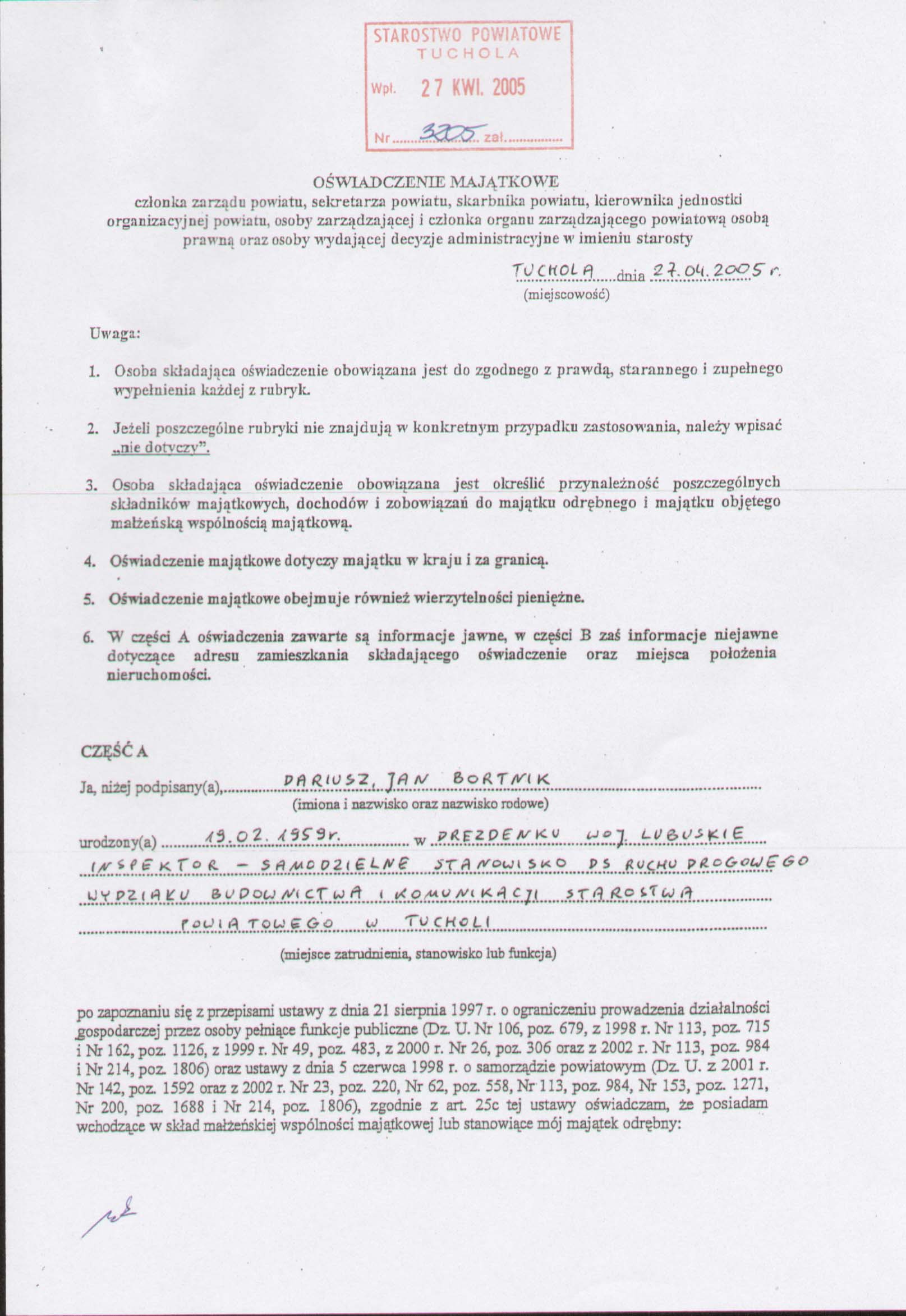 | utworzono: | data: 10:39, 23.05.2005 | przez: Dorota Słupińska | Oświadczenie majątkowe Dariusza Bortnika- inspektora Referatu Komunikacji |