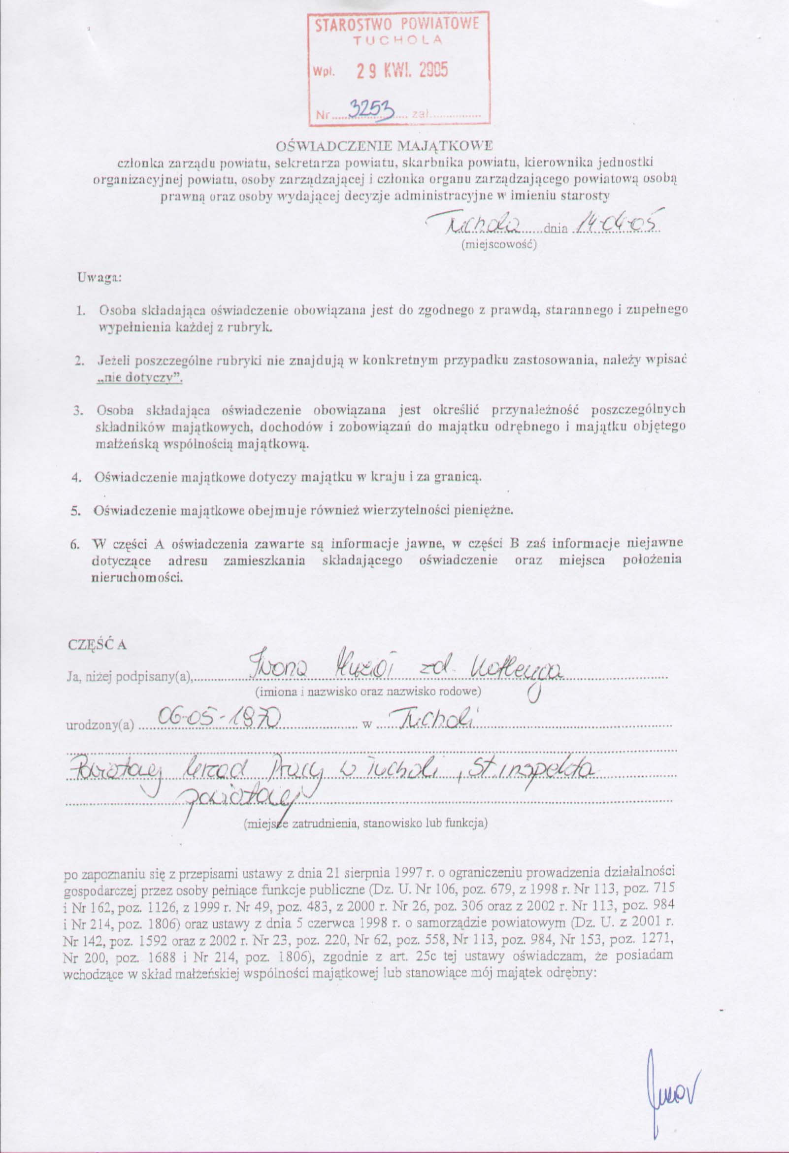 | utworzono: | data: 11:37, 24.05.2005 | przez: Dorota Słupińska | Oświadczenie majątkowe Iwony Muzioł - Starszego Inspektora Powiatowego Urzędu Pracy |