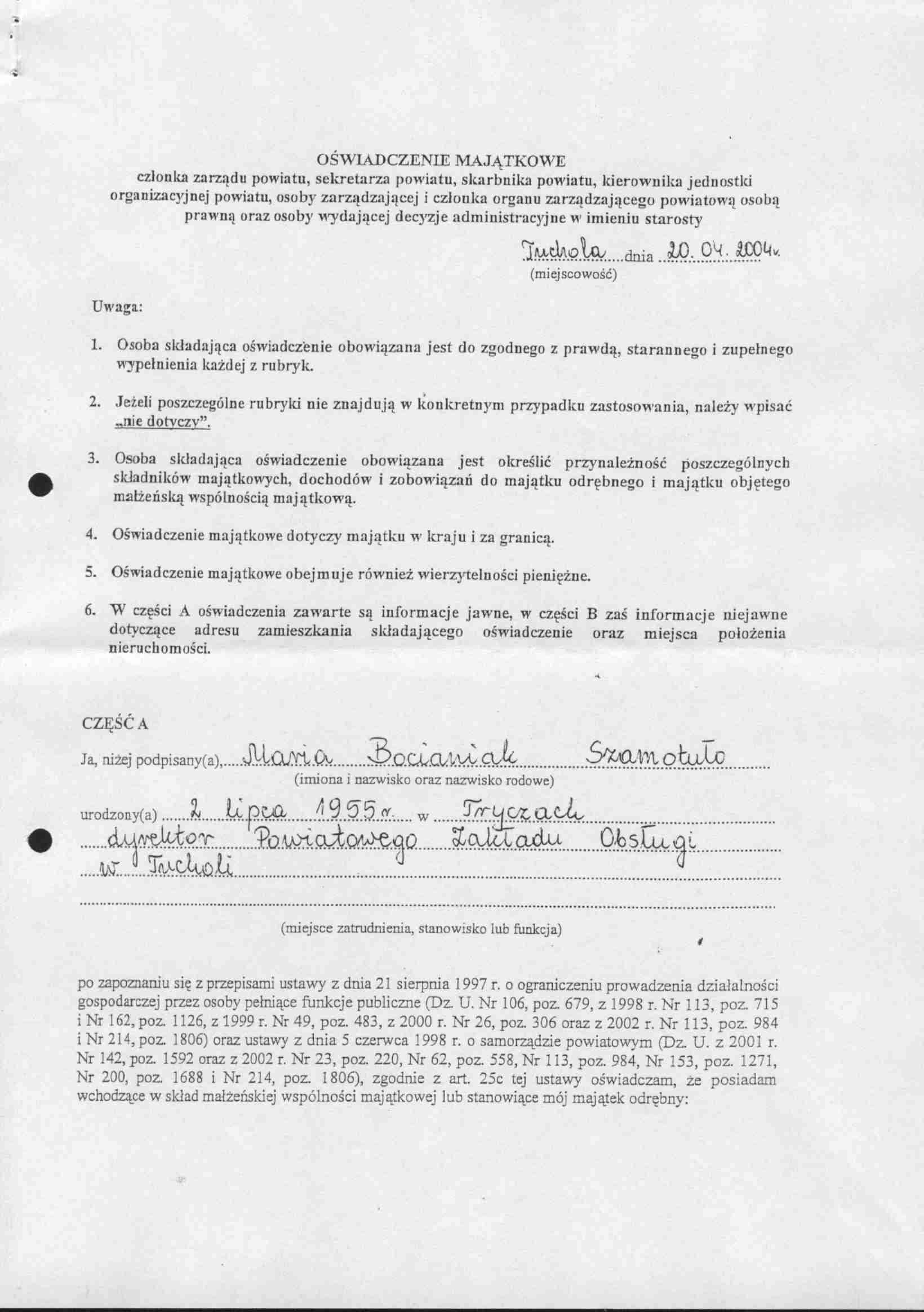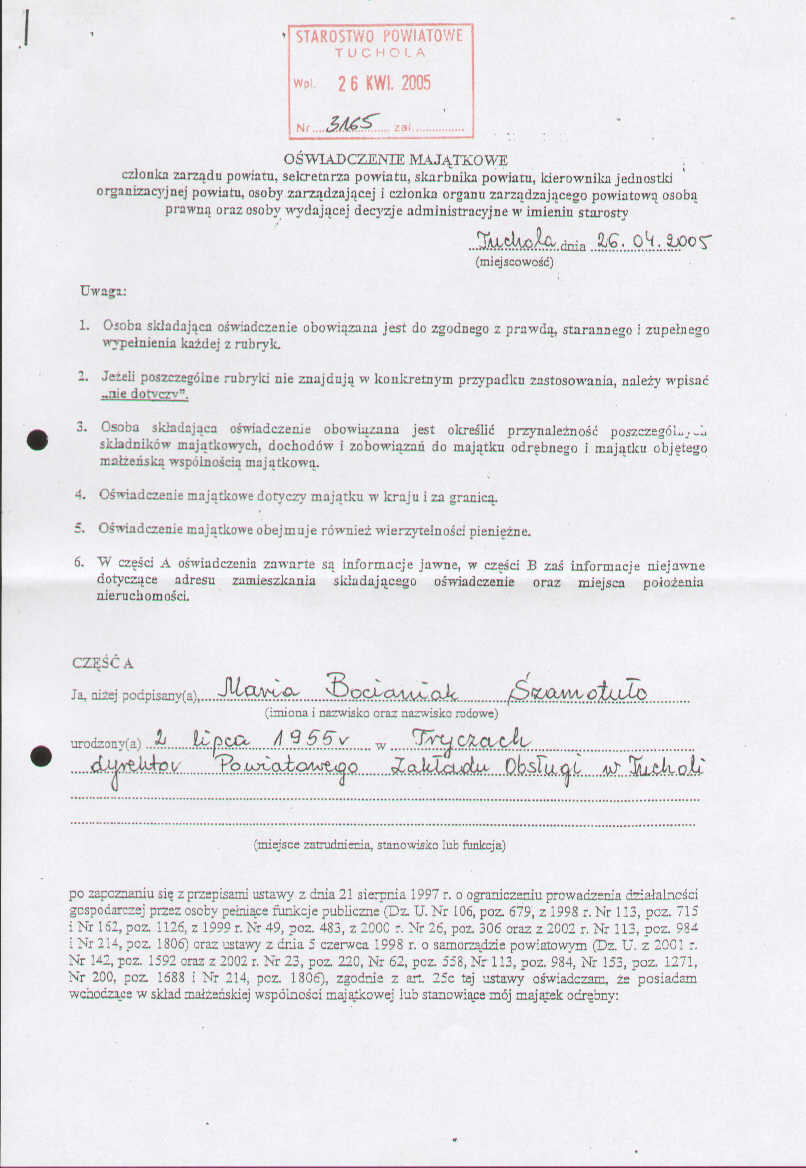| utworzono: | data: 10:27, 11.05.2005 | przez: Jacek Lorczak | Oświadczenie majątkowe Marii Bocianiak -Dyrektor Powiatowego Zakładu Obsługi |