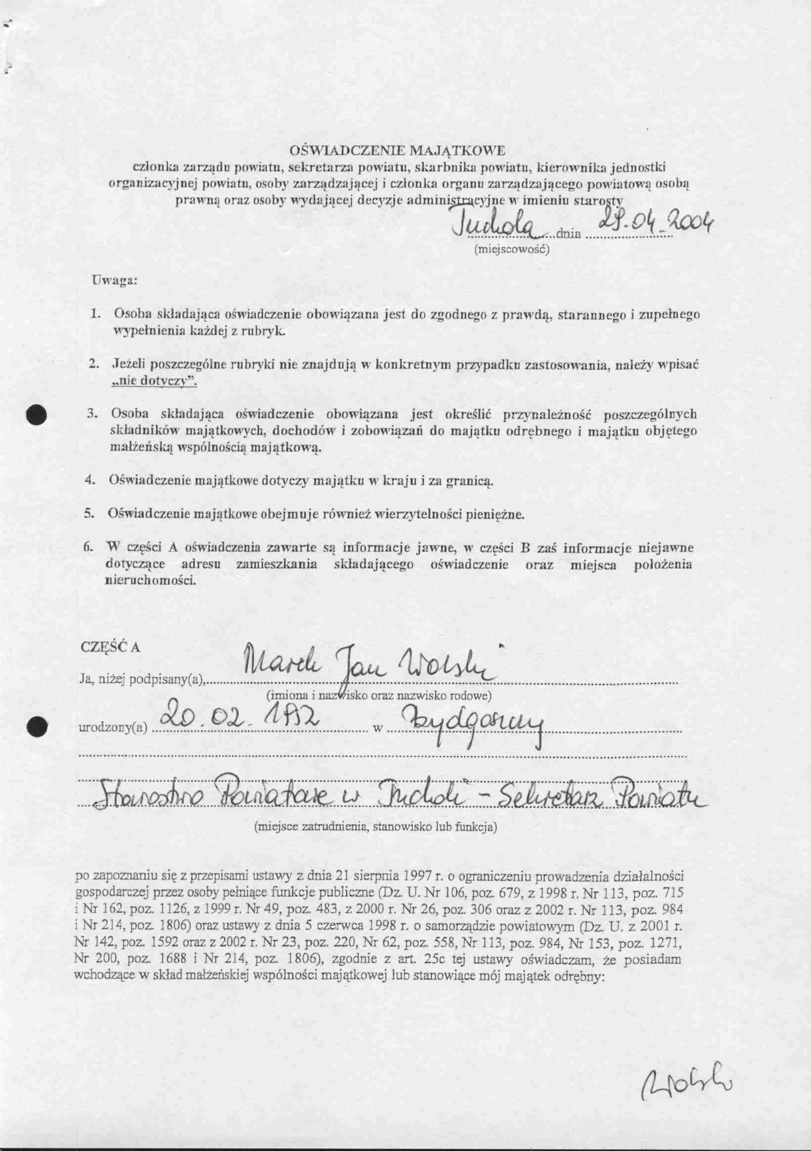 | utworzono: | data: 12:31, 11.05.2005 | przez: Jacek Lorczak | Oświadczenie majątkowe Marka Wolskiego - Sekretarz Powiatu Tucholskiego |