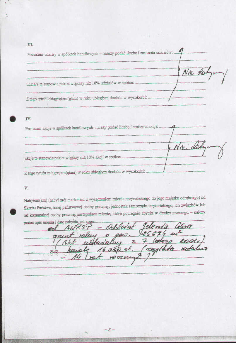 | utworzono: | data: 12:48, 11.05.2005 | przez: Jacek Lorczak | Oświadczenie majątkowe Mieczysława Gawrona - Nadleśniczy Nadleśnictwa Osie |