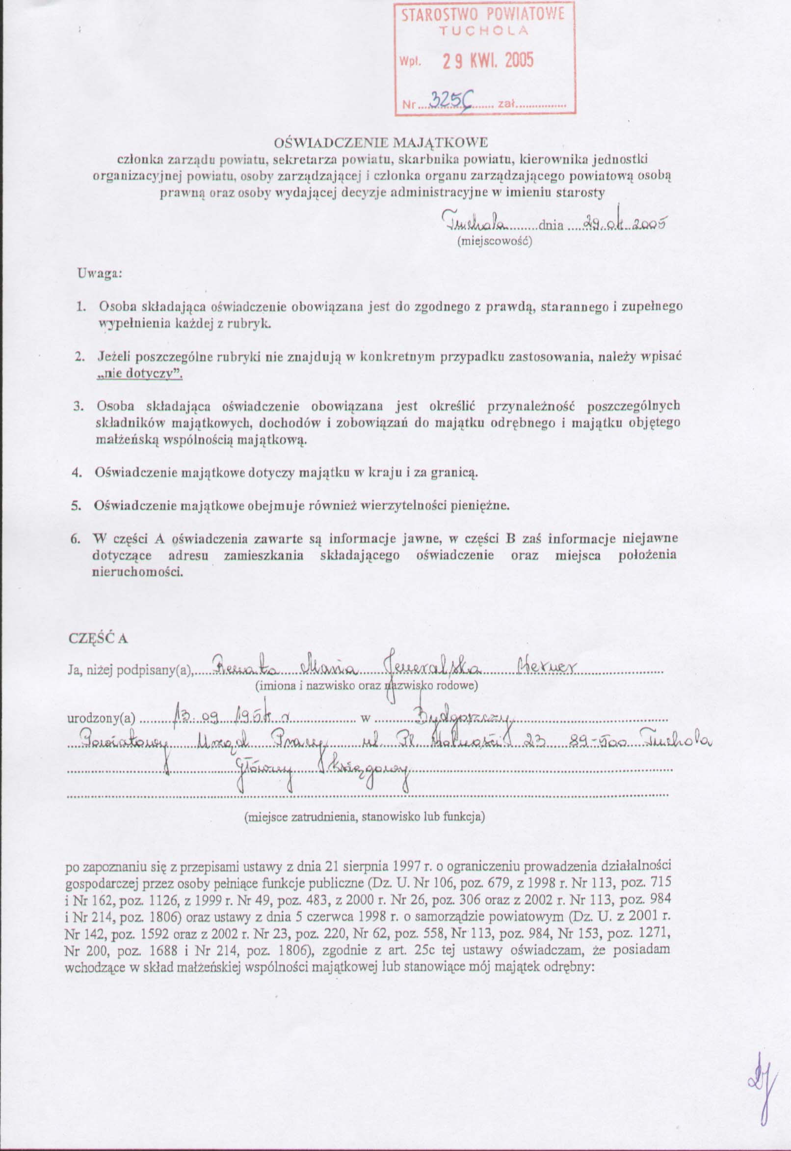 | utworzono: | data: 11:06, 24.05.2005 | przez: Dorota Słupińska | Oświadczenie majątkowe Renaty Jeneralskiej - Głównego Księgowego Powiatowego Urzędu Pracy |