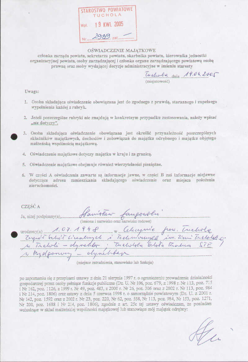 | utworzono: | data: 10:16, 11.05.2005 | przez: Jacek Lorczak | Oświadczenie majątkowe Stanisława Łangowskiego - Dyrektora Zespołu Szkół Licealnych i Technicznych |