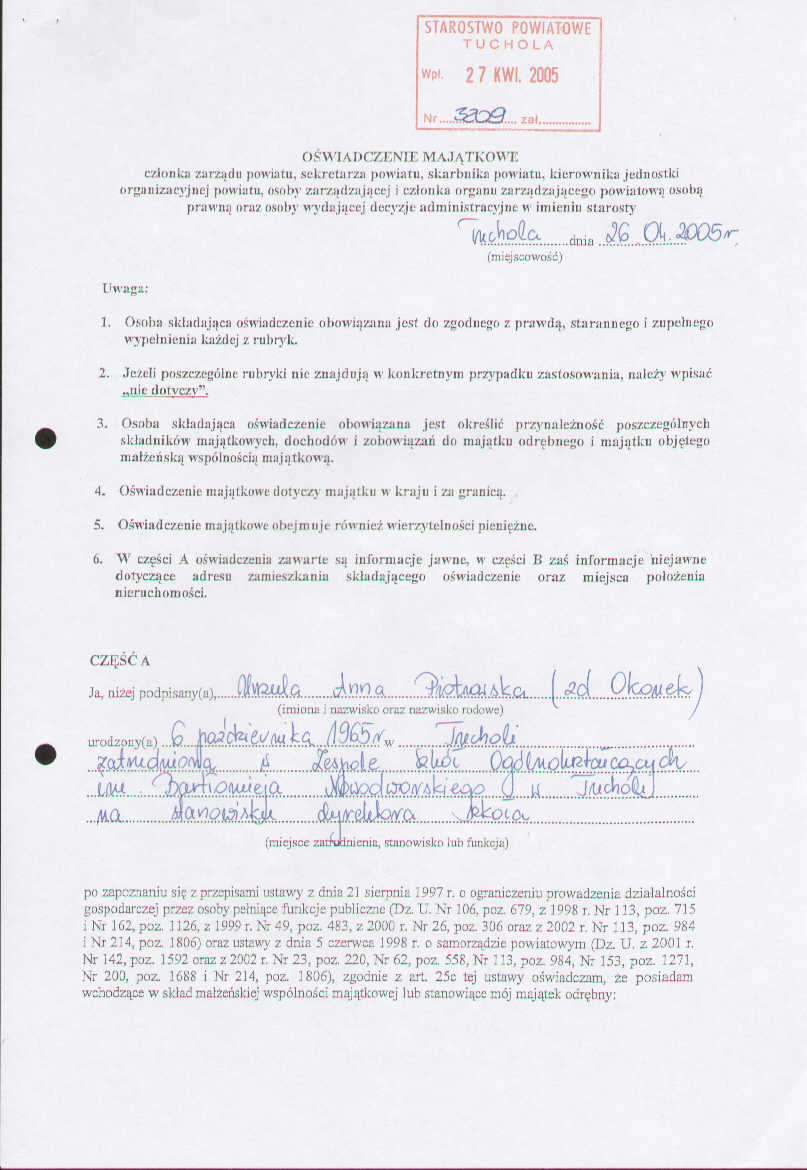 | utworzono: | data: 10:47, 11.05.2005 | przez: Jacek Lorczak | Oświadczenie majątkowe Urszuli Piotrowskiej - dyrektor Zespołu Szkół Ogólnokształcących |