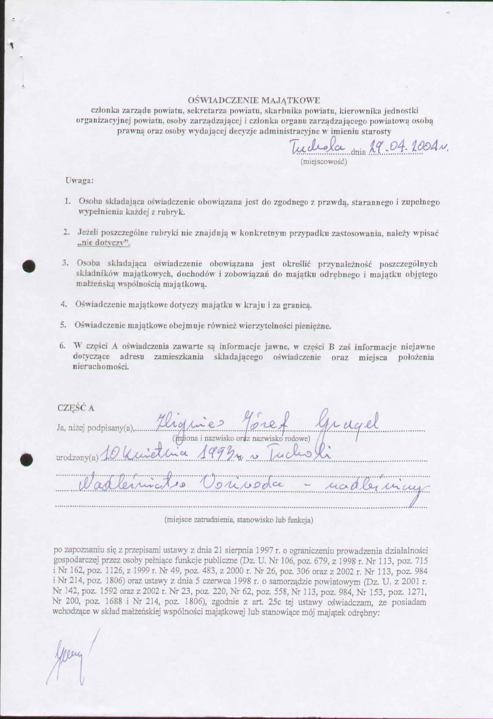 | utworzono: | data: 09:35, 11.05.2005 | przez: Jacek Lorczak | Oświadczenie majątkowe Zbigniewa Grugela - Nadleśniczy Nadleśnictwa Woziwoda |