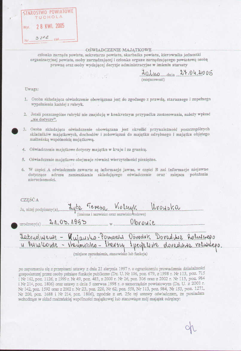 | utworzono: | data: 10:52, 11.05.2005 | przez: Jacek Lorczak | Oświadczenie majątkowe Zyty Kolczyk - Członka Zarządu Powiatu Tucholskiego |