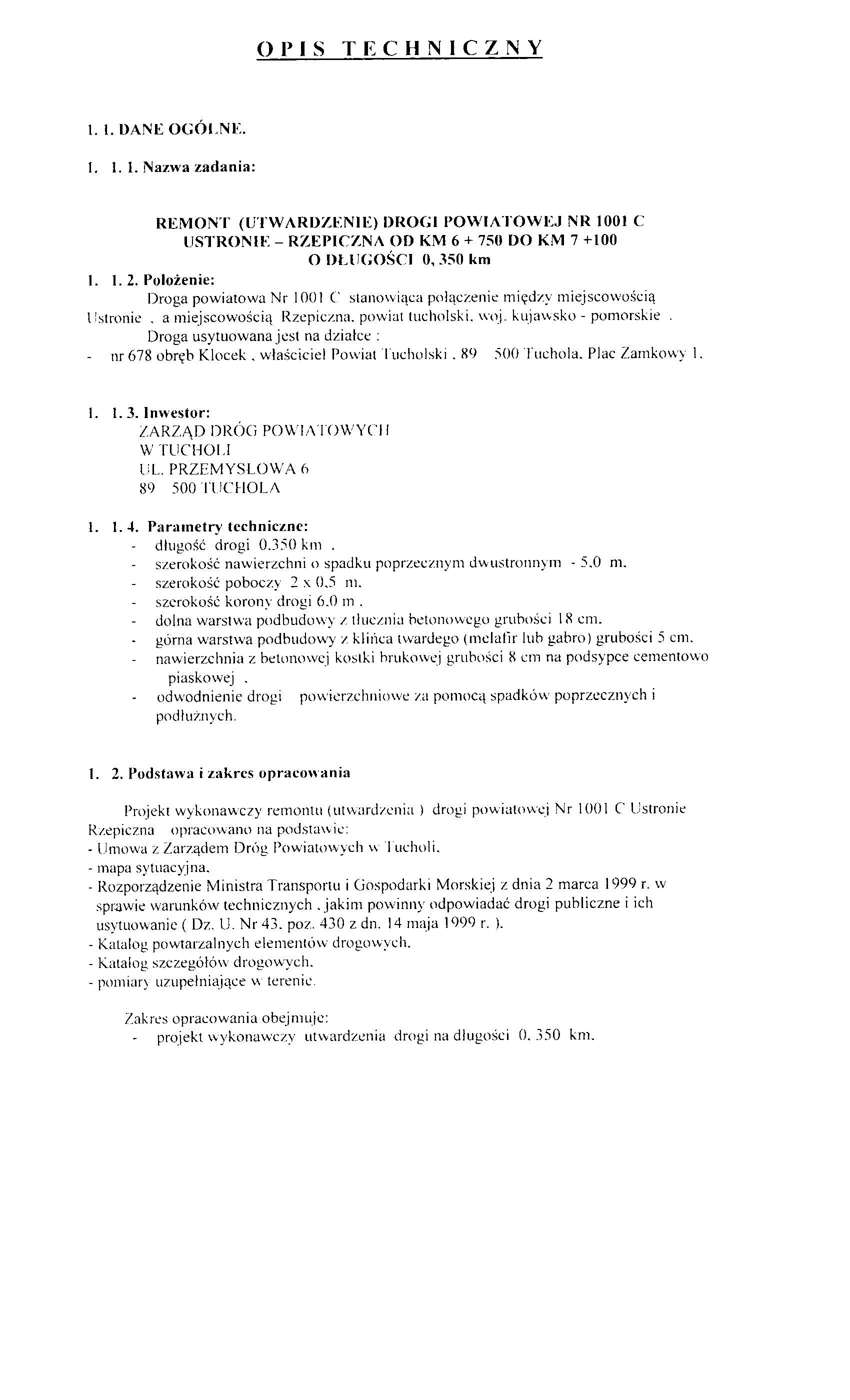 | osoba odpowiedzialna: | Zarząd Dróg Powiatowych w Tucholi | ||