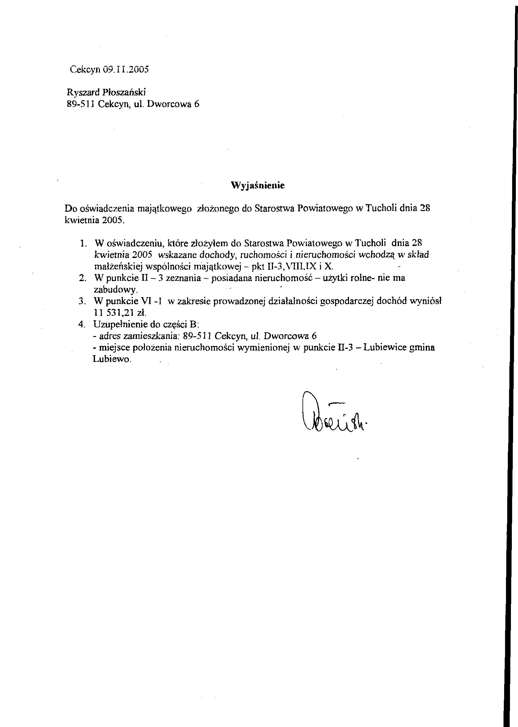 Ja, niżej podpisany(a), Ryszard Płoszański