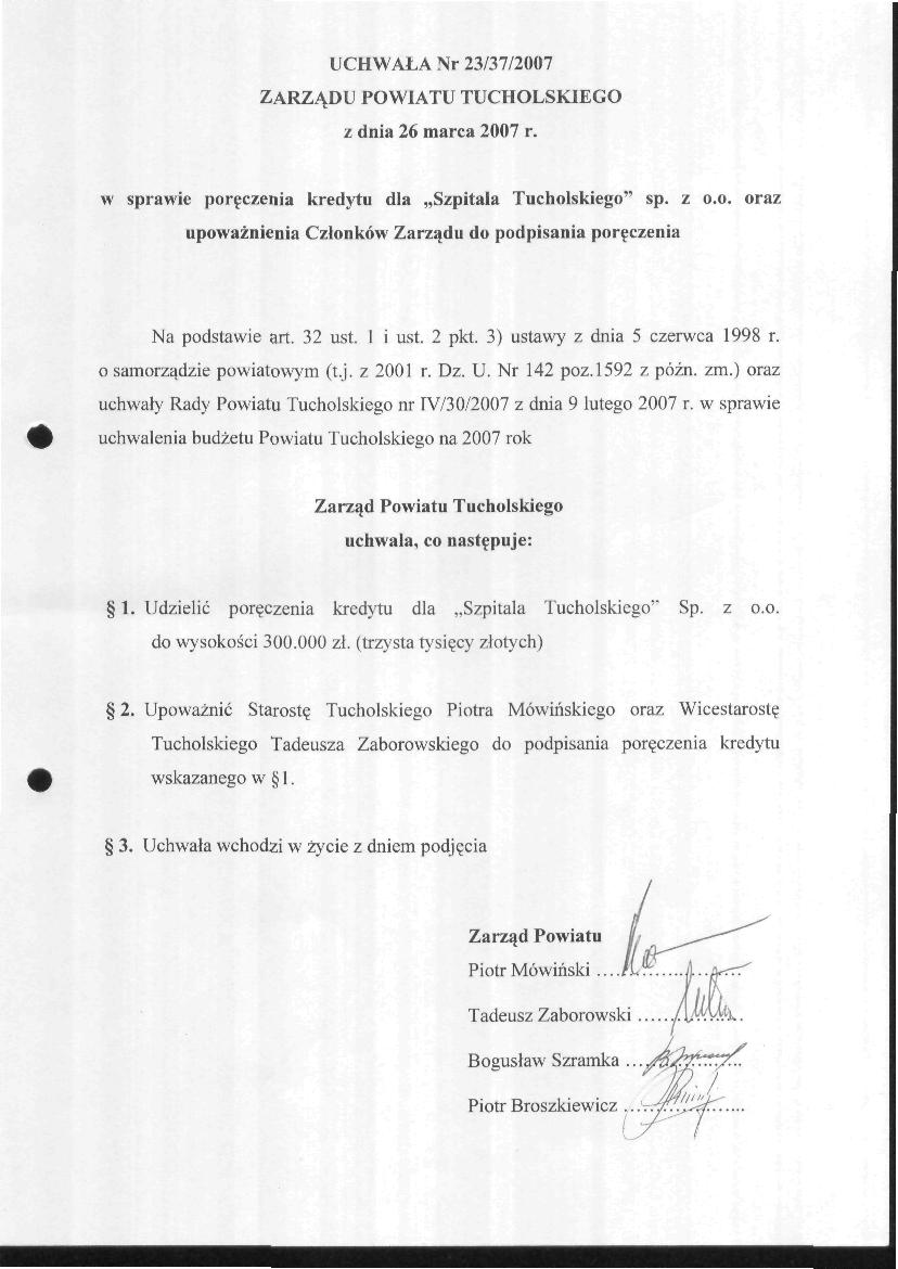| osoba odpowiedzialna: | Zarządu Powiatu Tucholskiego | ||