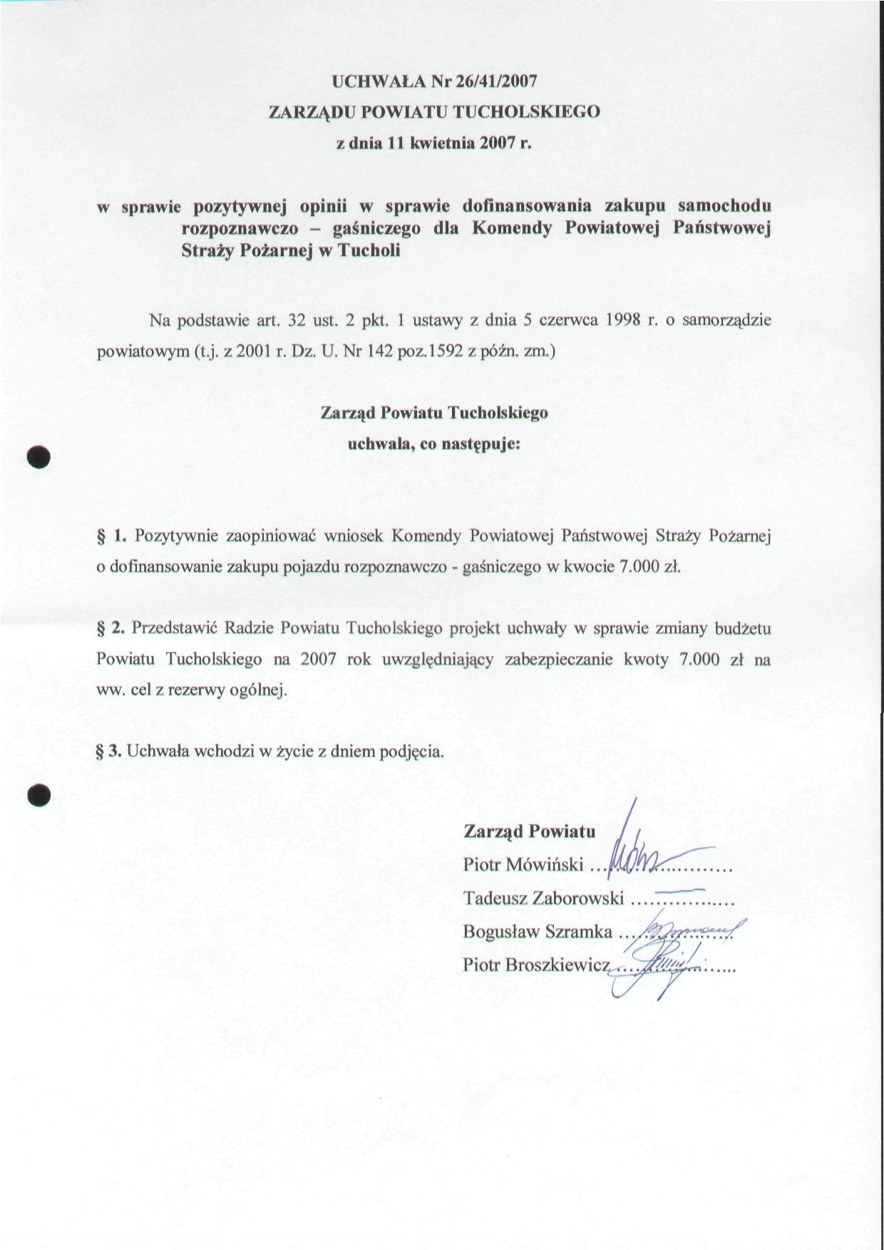 | utworzono: | data: 10:08, 23.08.2007 | przez: Wiesława Borowa | Uchwała nr 26/41/2007 Zarządu Powiatu Tucholskieego z dnia 11 kwietnia 2007 |