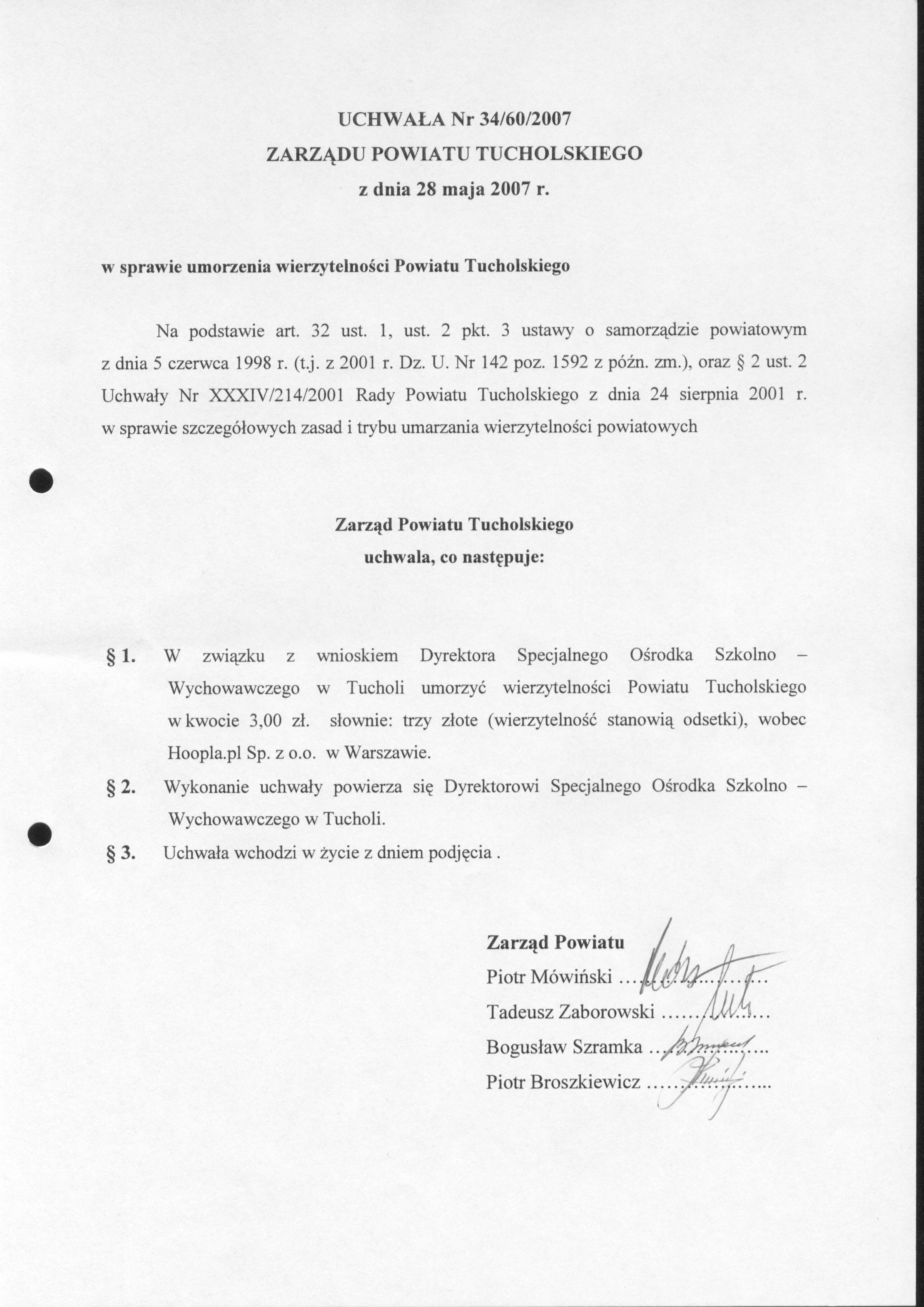 | osoba odpowiedzialna: | Zarządu Powiatu Tucholskiego | ||