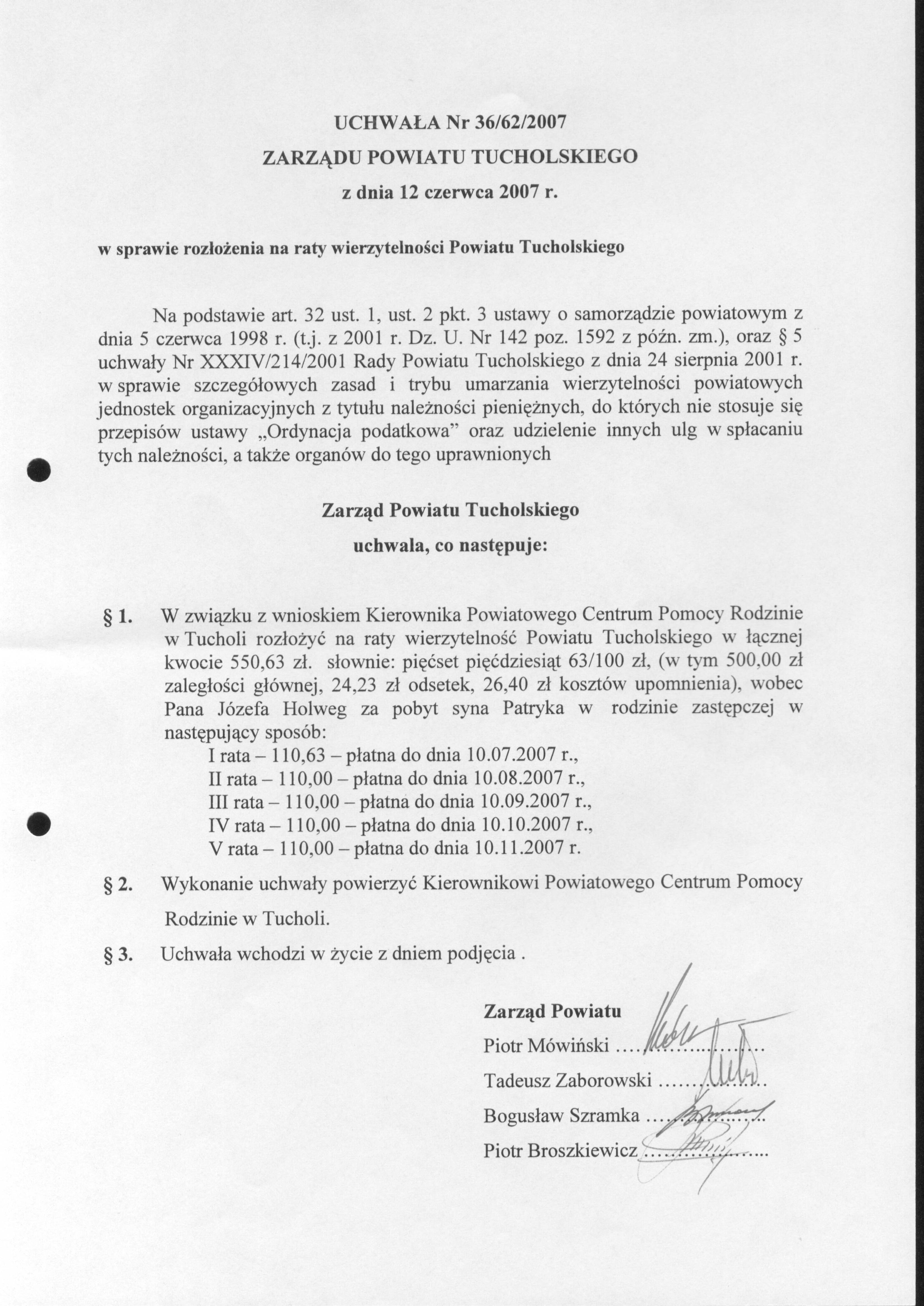 | osoba odpowiedzialna: | Zarządu Powiatu Tucholskiego | ||