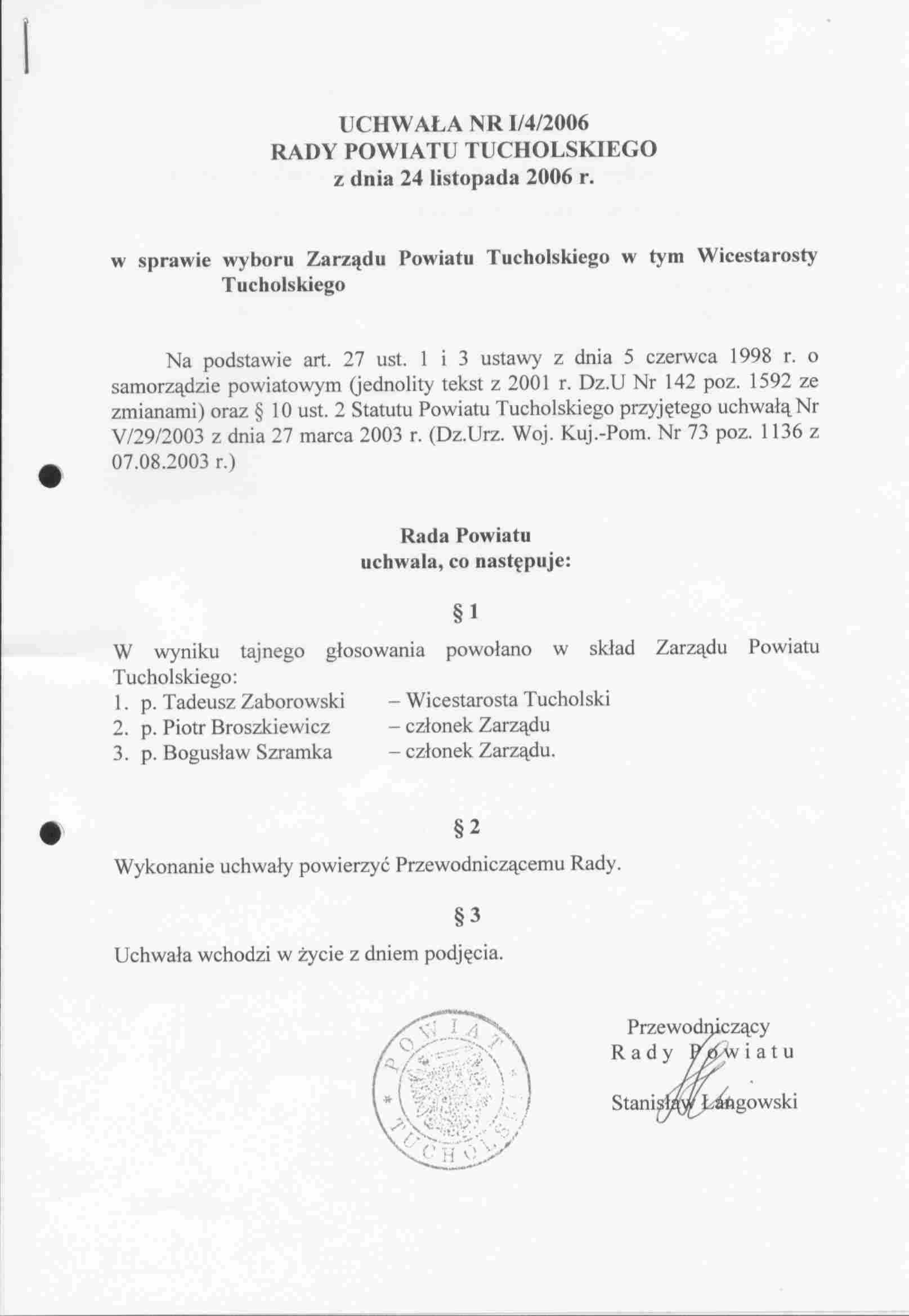 | osoba odpowiedzialna: | Rady Powiatu Tucholskiego | ||