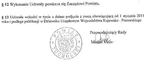 Uchwała została opublikowana w Dzienniku Urzędowym Województwa Kujawsko-Pomorskiego Nr 94, poz. 730 z 19 kwietnia 2011 r. Wersja opublikowana znajduje się tutaj