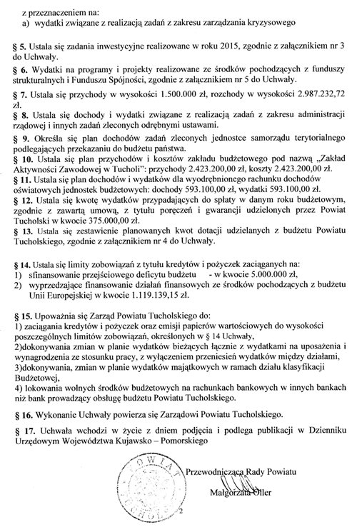 Uchwała Nr IX/51/2015 Rady Powiatu Tucholskiego z dnia 19 czerwca 2015 r. w sprawie zmian budżetu powiatu tucholskiego na rok 2015