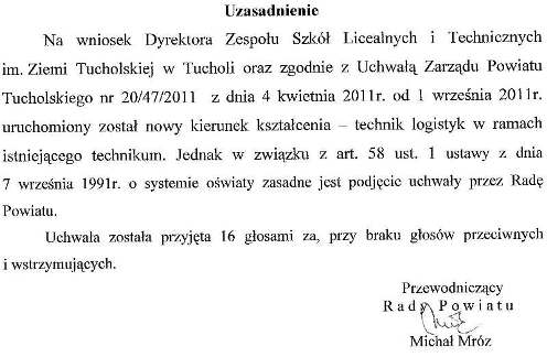 | utworzono: | data: 09:19, 08.05.2012 | przez: Elżbieta Damasiewicz | Uchwała nr XII/85/2011 Rady Powiatu Tucholskiego z dnia 25 listopada 2011 r. w sprawie utworzenia Technikum Logistycznego |