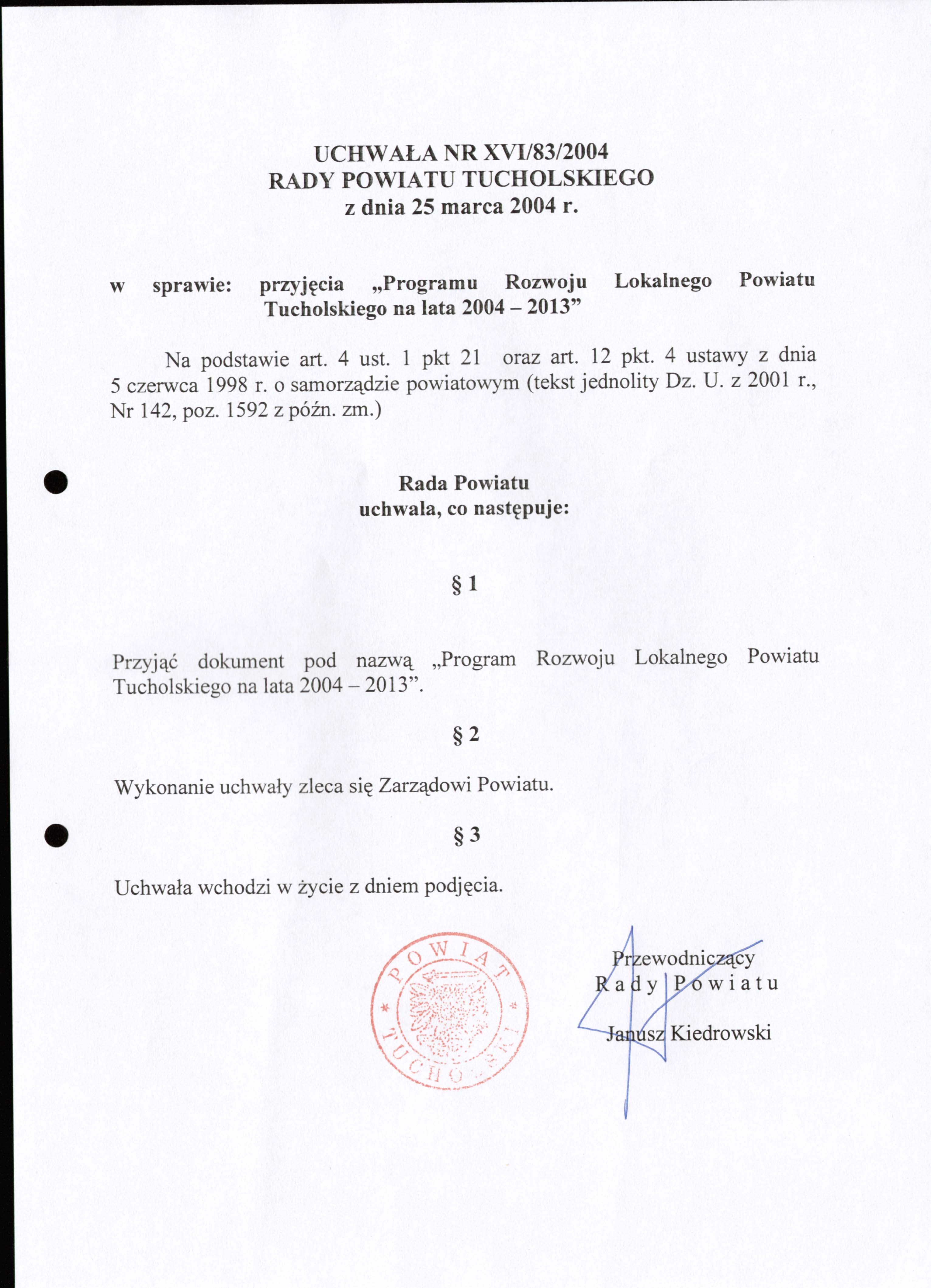 w sprawie przyjęcia „Programu Rozwoju Lokalnego Powiatu Tucholskiego na lata 2004-2013″