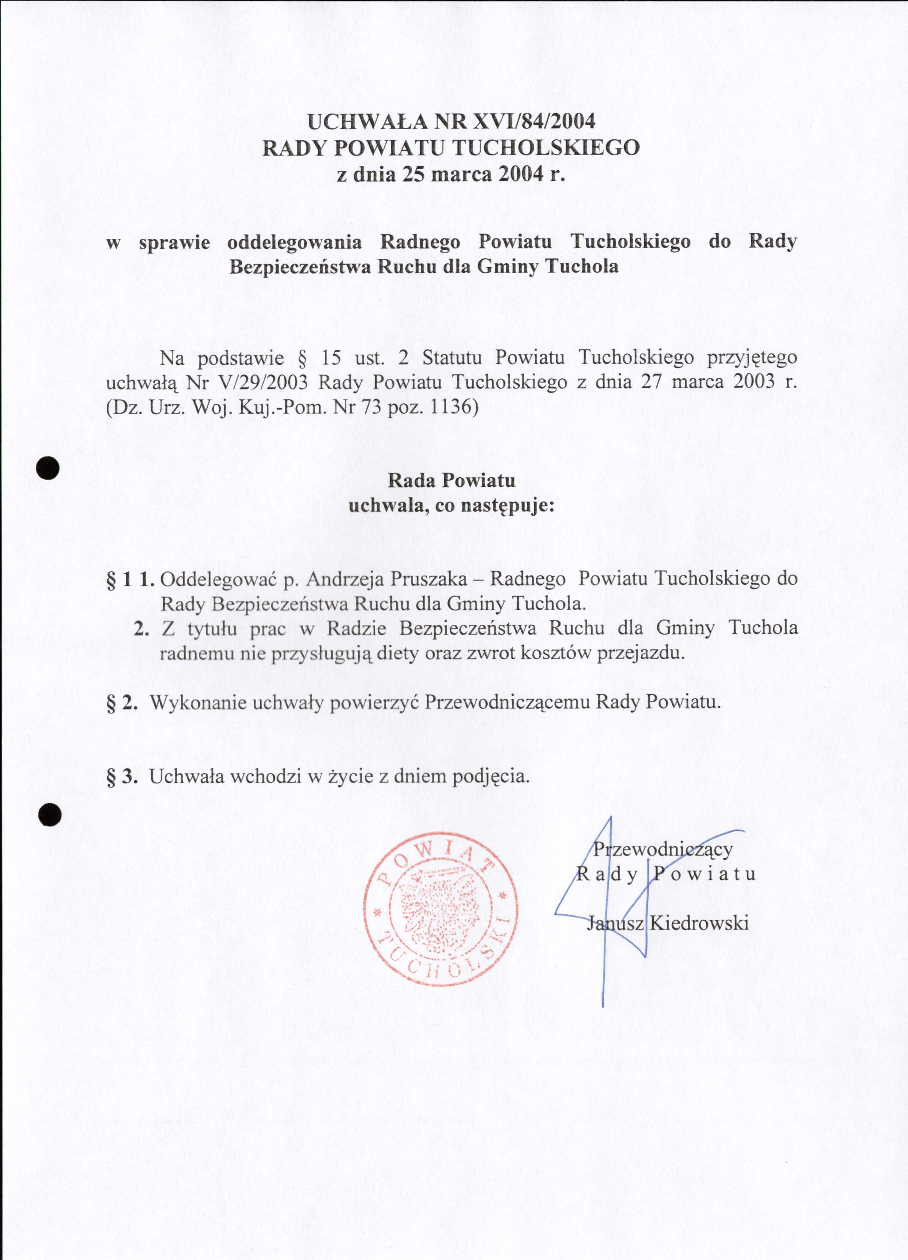 w sprawie oddelegowania Radnego Powiatu Tucholskiego do Rady Bezpieczeństwa Ruchu dla Gminy Tuchola
