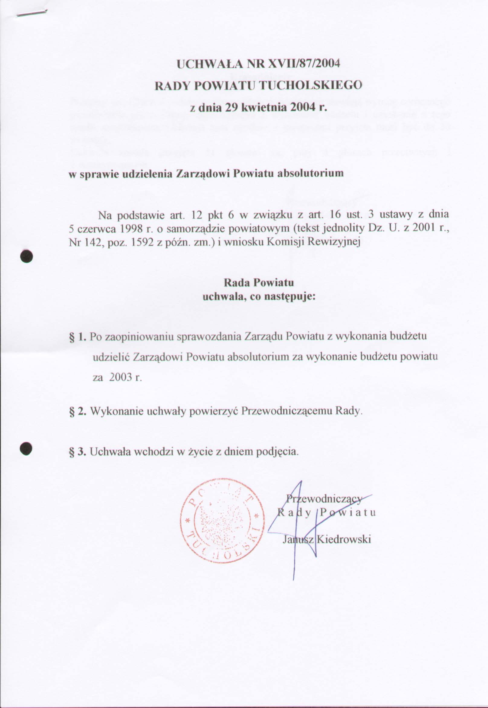 | utworzono: | data: 10:06, 07.05.2004 | przez: Elżbieta Damasiewicz | Uchwała nr XVII/87/2004 Rady Powiatu Tucholskiego z dnia 29 kwietnia 2004 |