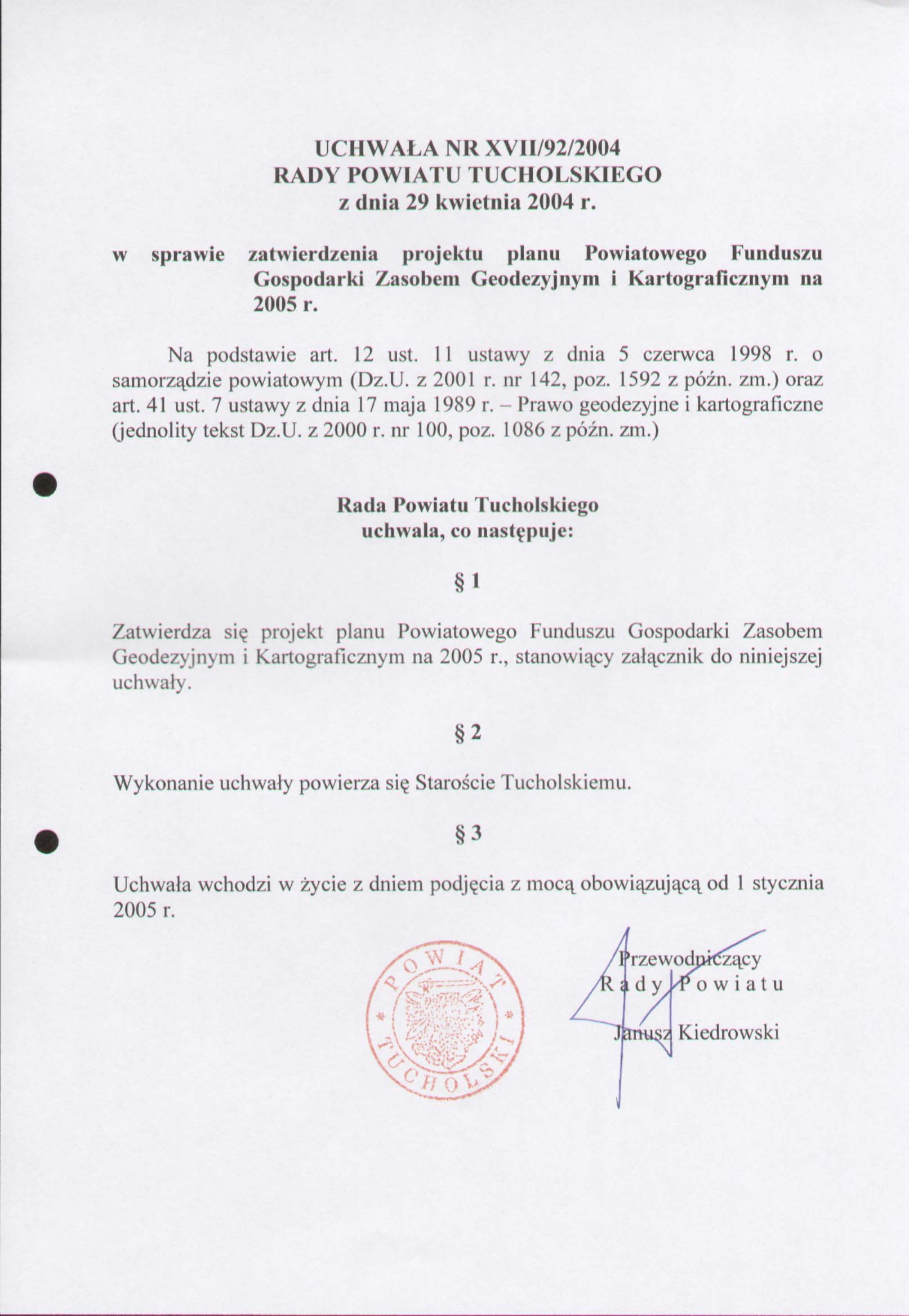 w sprawie zatwierdzenia projektu planu Powiatowego Funduszu Gospodarki Zasobem Geodezyjnym i Kartograficznym na 2005 r.