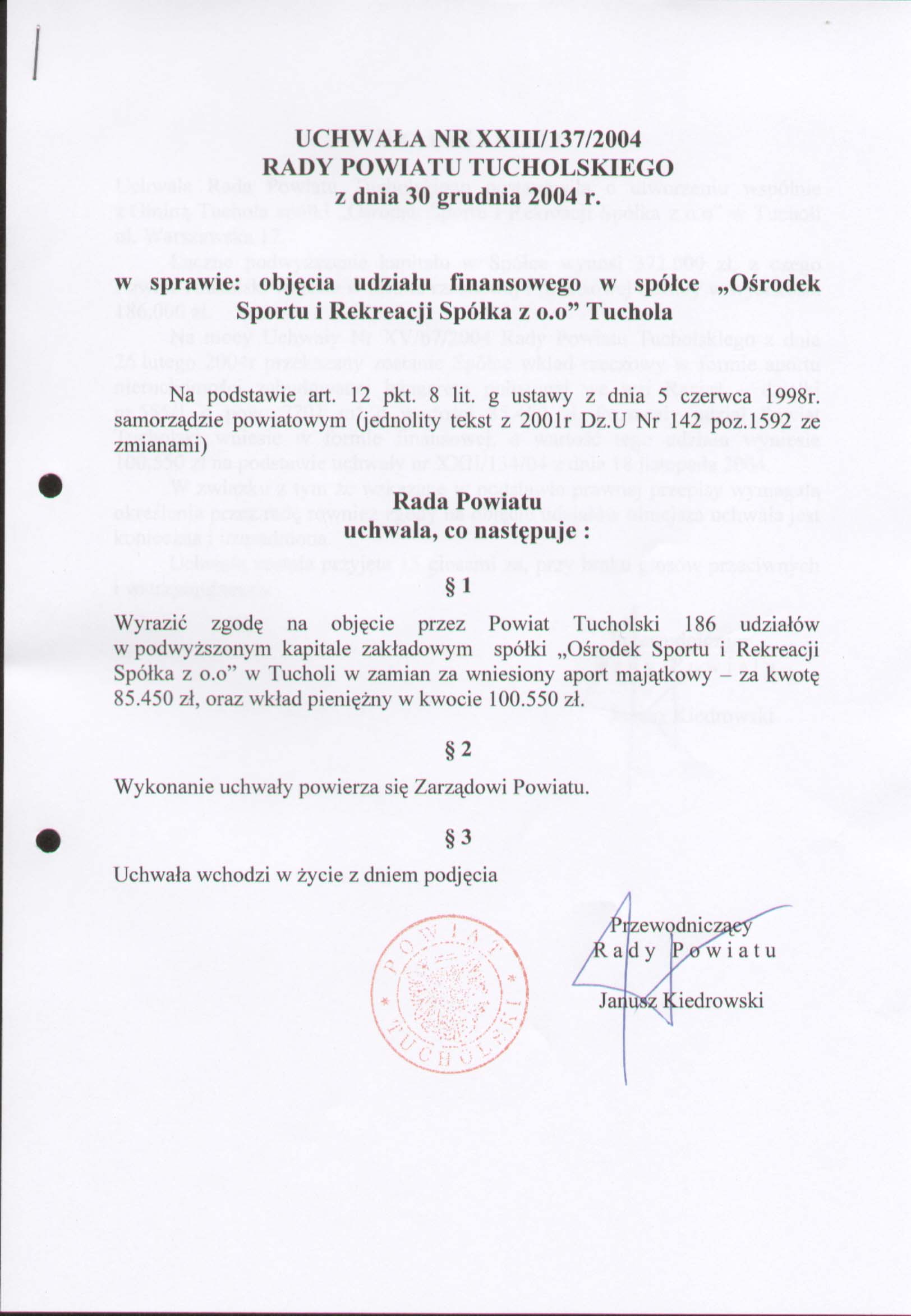| utworzono: | data: 13:19, 12.01.2005 | przez: Elżbieta Damasiewicz | Uchwała nr XXIII/137/2004 Rady Powiatu Tucholskiego z dnia 30 grudnia 2004 |