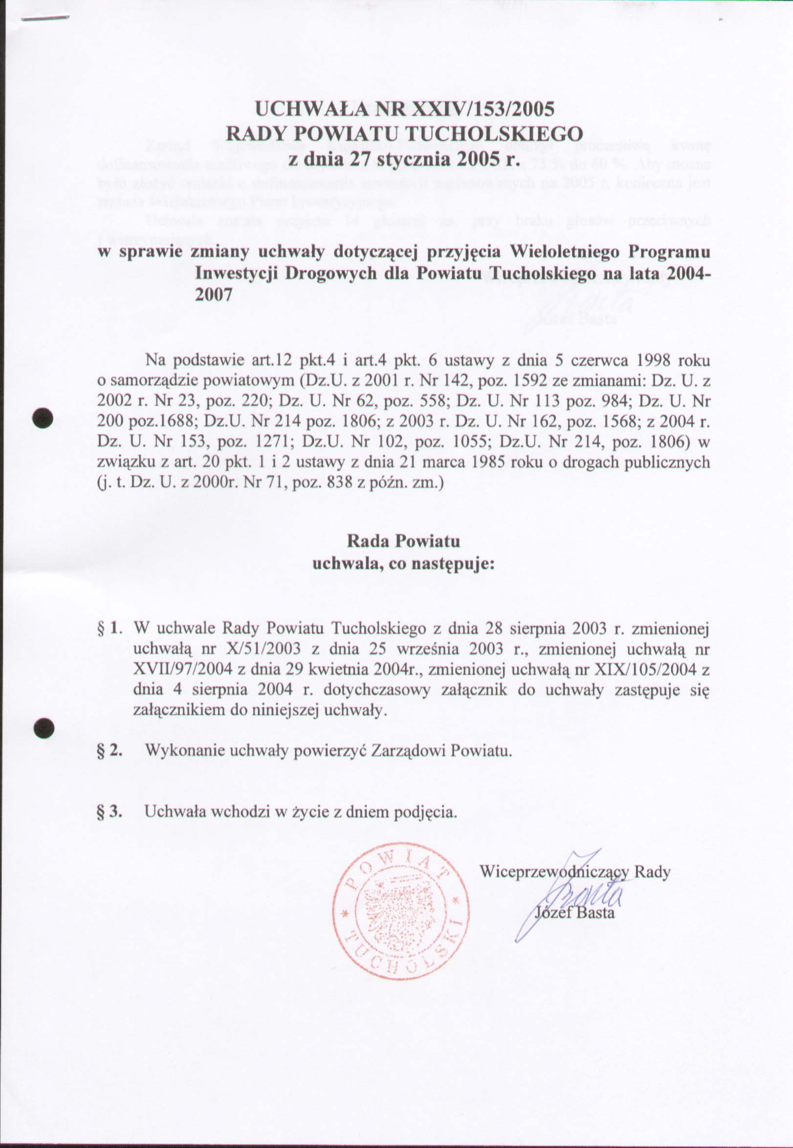 w sprawie zmiany uchwały dotyczącej przyjęcia Wieloletniego Programu Inwestycji Drogowych dla Powiatu Tucholskiego na lata 2004-2007