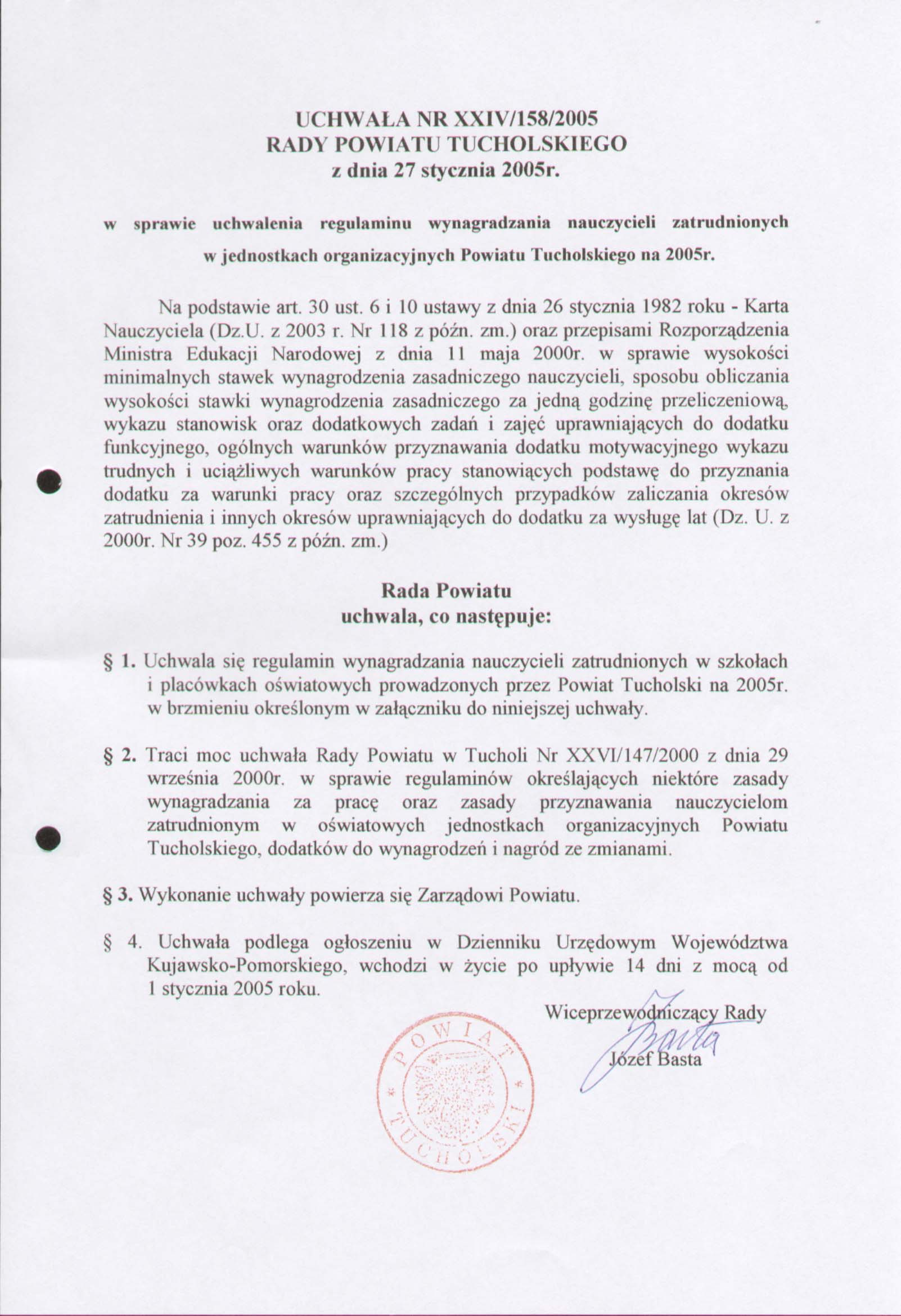 w sprawie uchwalenia regulaminu wynagradzania nauczycieli zatrudnionych w jednostkach organizacyjnych Powiatu Tucholskiego na 2005 r.