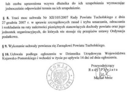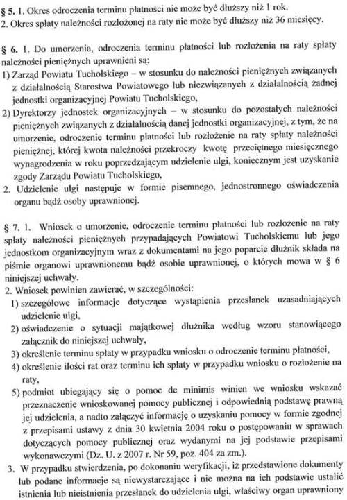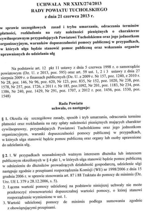 Uchwała nr XXIX/274/2013 Rady Powiatu Tucholskiego z dnia 21 czerwca 2013 r. w sprawie szczegółowych zasad i trybu umarzania, odraczania terminów płatności, rozkładania na raty należności pieniężnych o charakterze cywilnoprawnym…