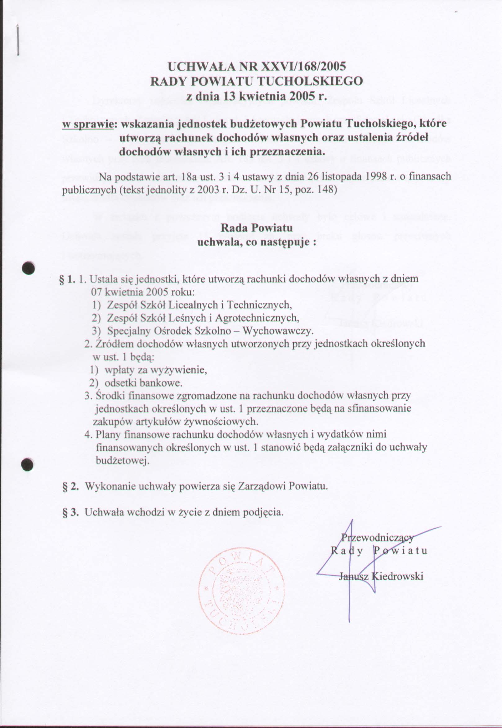 | utworzono: | data: 11:34, 21.04.2005 | przez: Elżbieta Damasiewicz | Uchwała nr XXVI/168/2005 Rady Powiatu Tucholskiego z dnia 13 kwietnia 2005 |