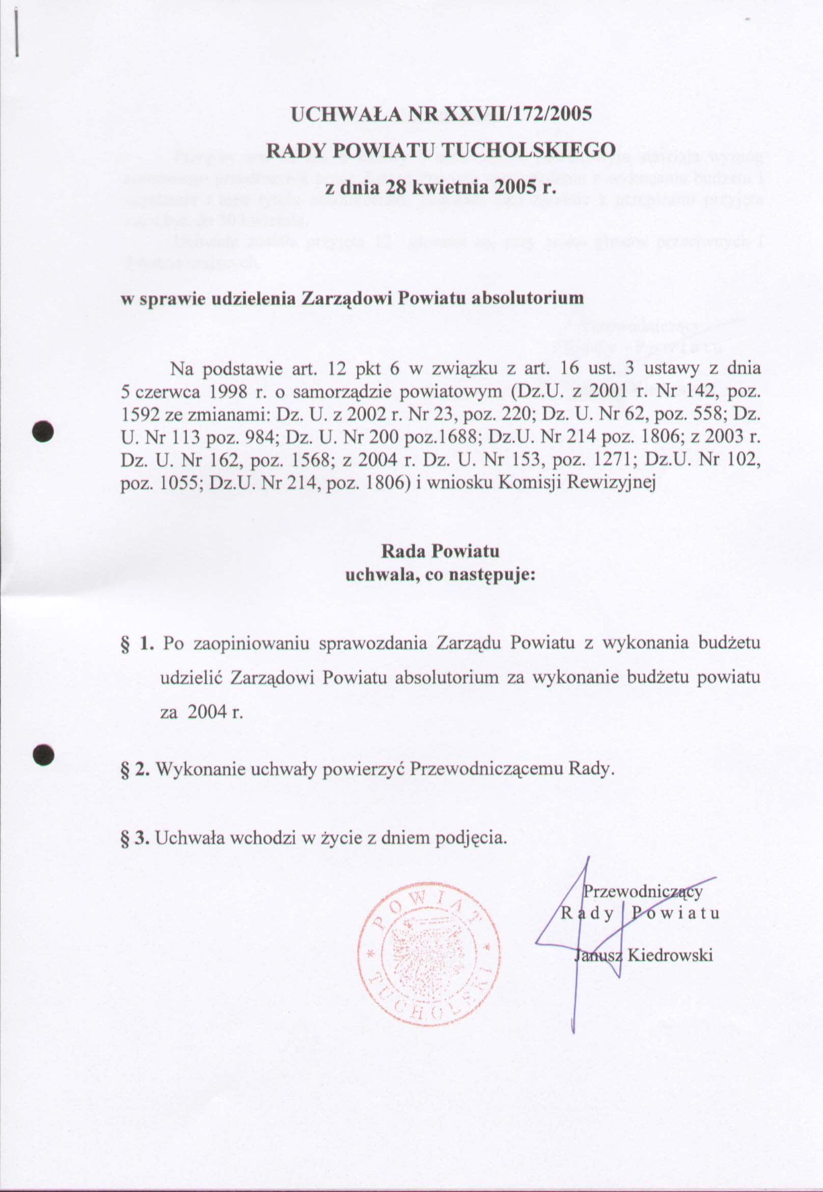| utworzono: | data: 09:09, 09.05.2005 | przez: Elżbieta Damasiewicz | Uchwała nr XXVII/172/2005 Rady Powiatu Tucholskiego z dnia 28 kwietnia 2005 |