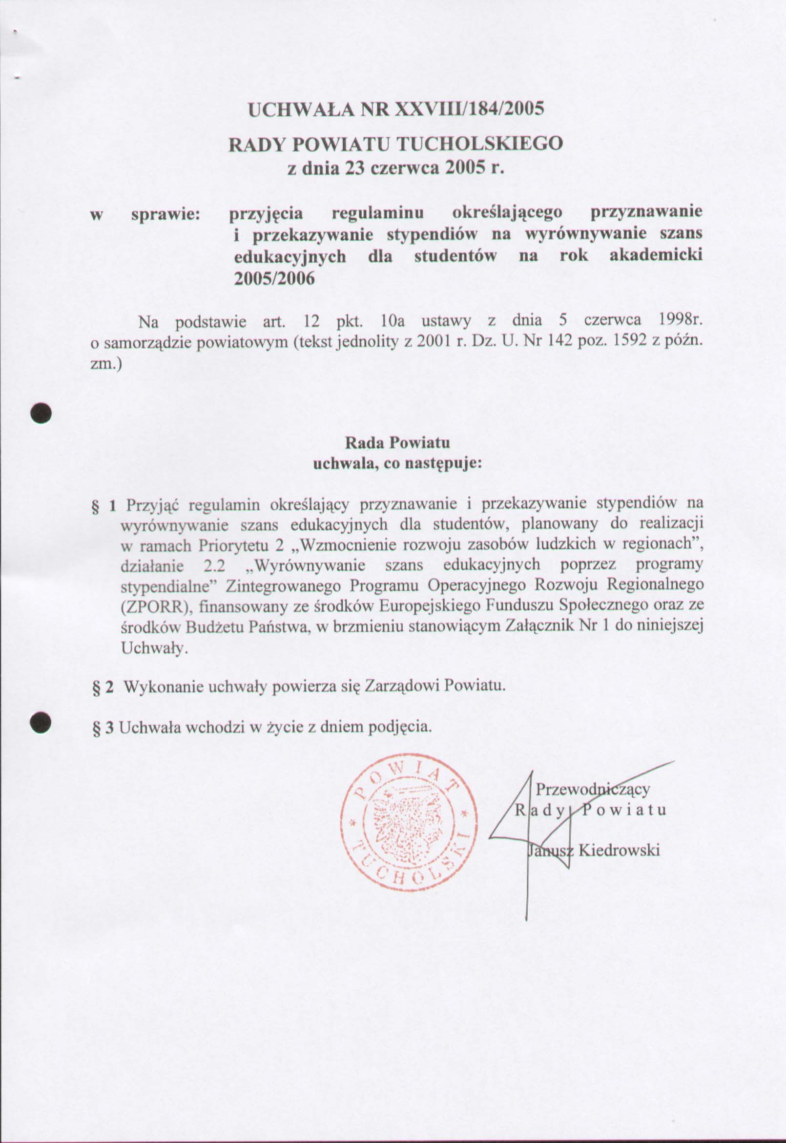 | utworzono: | data: 10:29, 29.06.2005 | przez: Wiesława Borowa | Uchwała nr XXVIII/184/2005 Rady Powiatu Tucholskiego z dnia 23 czerwca 2005 |