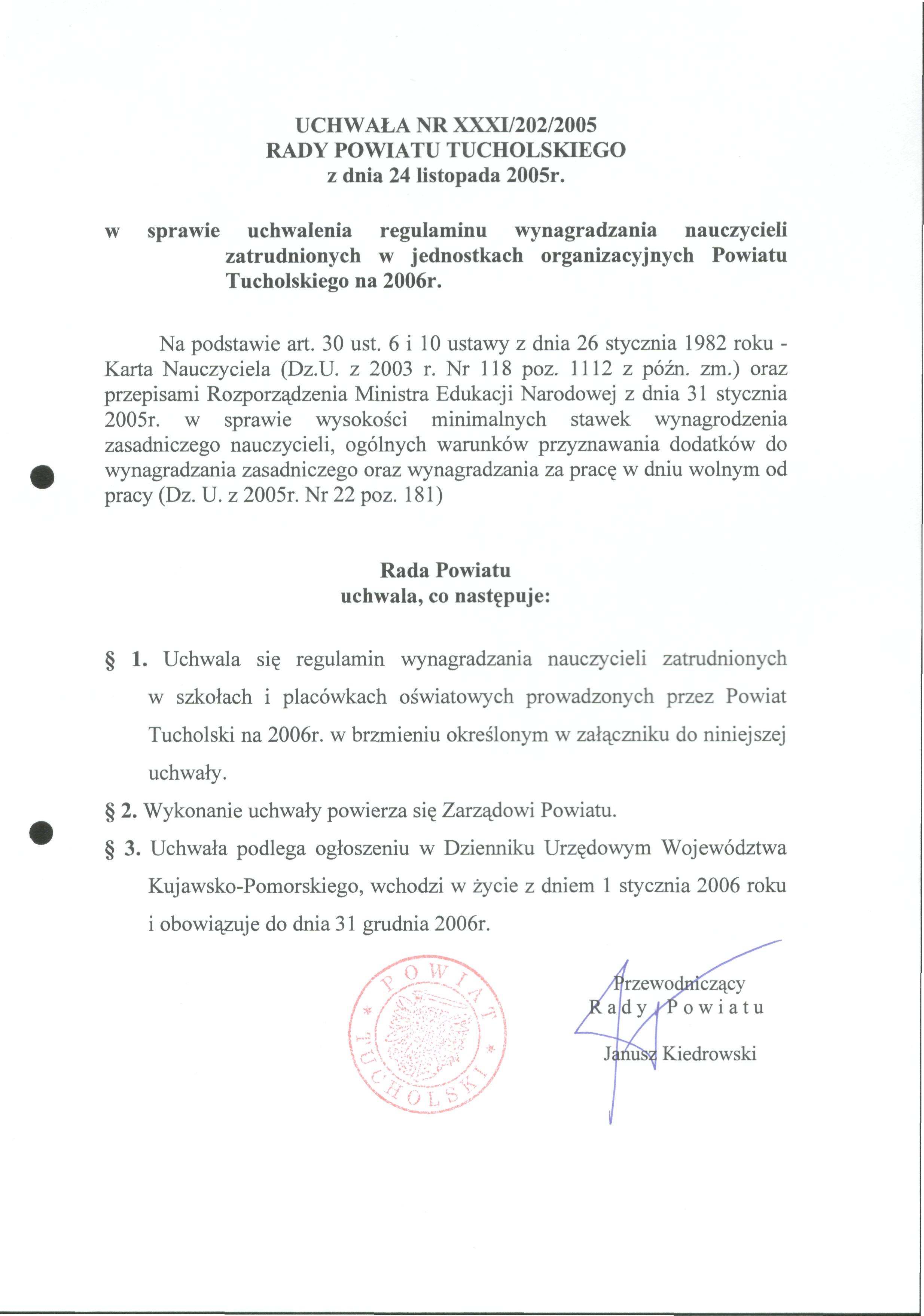 Uchwała nr XXXI/202/2005 Rady Powiatu Tucholskiego z dnia 24 listopada 2005