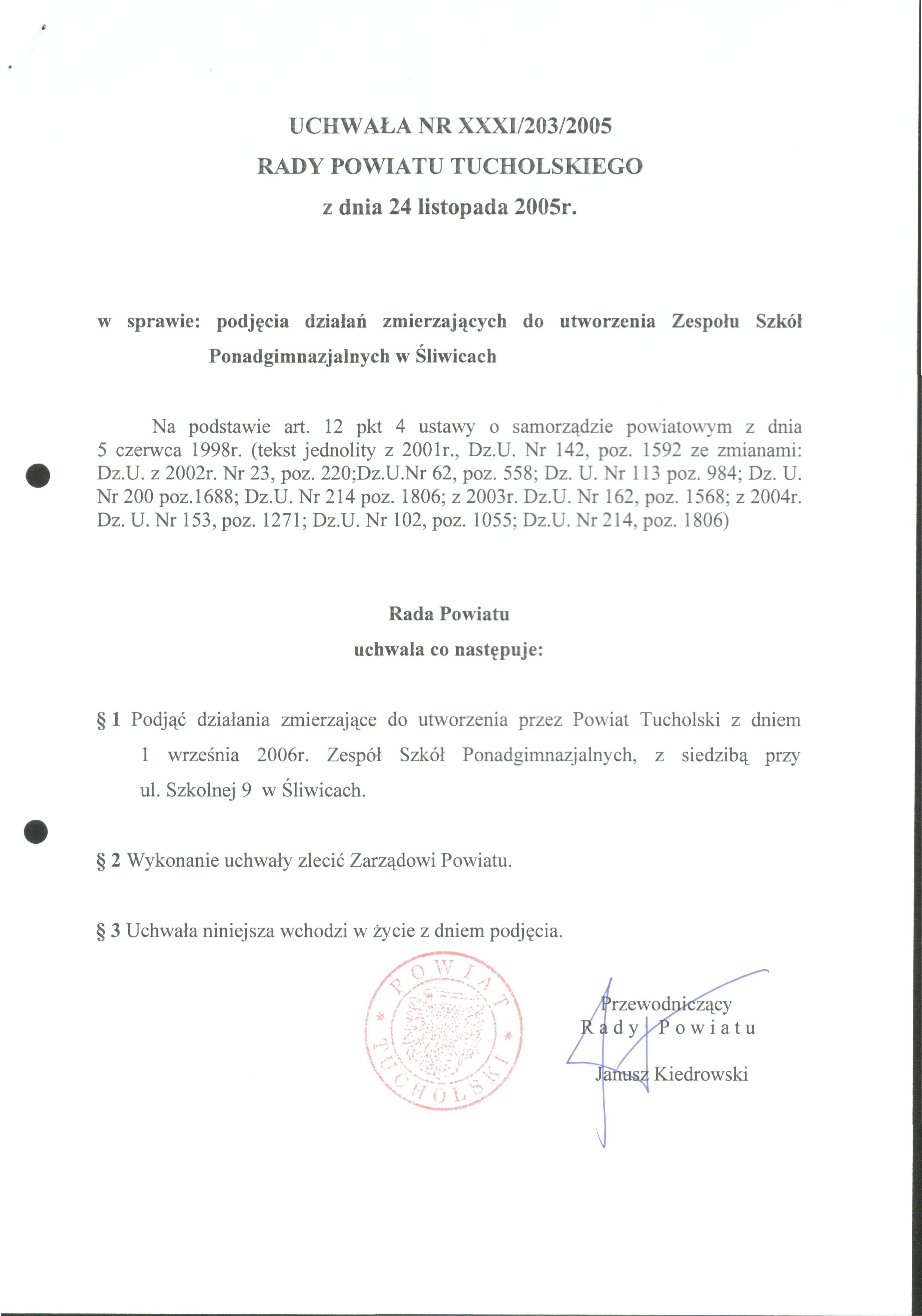 | osoba odpowiedzialna: | Rady Powiatu Tucholskiego | ||