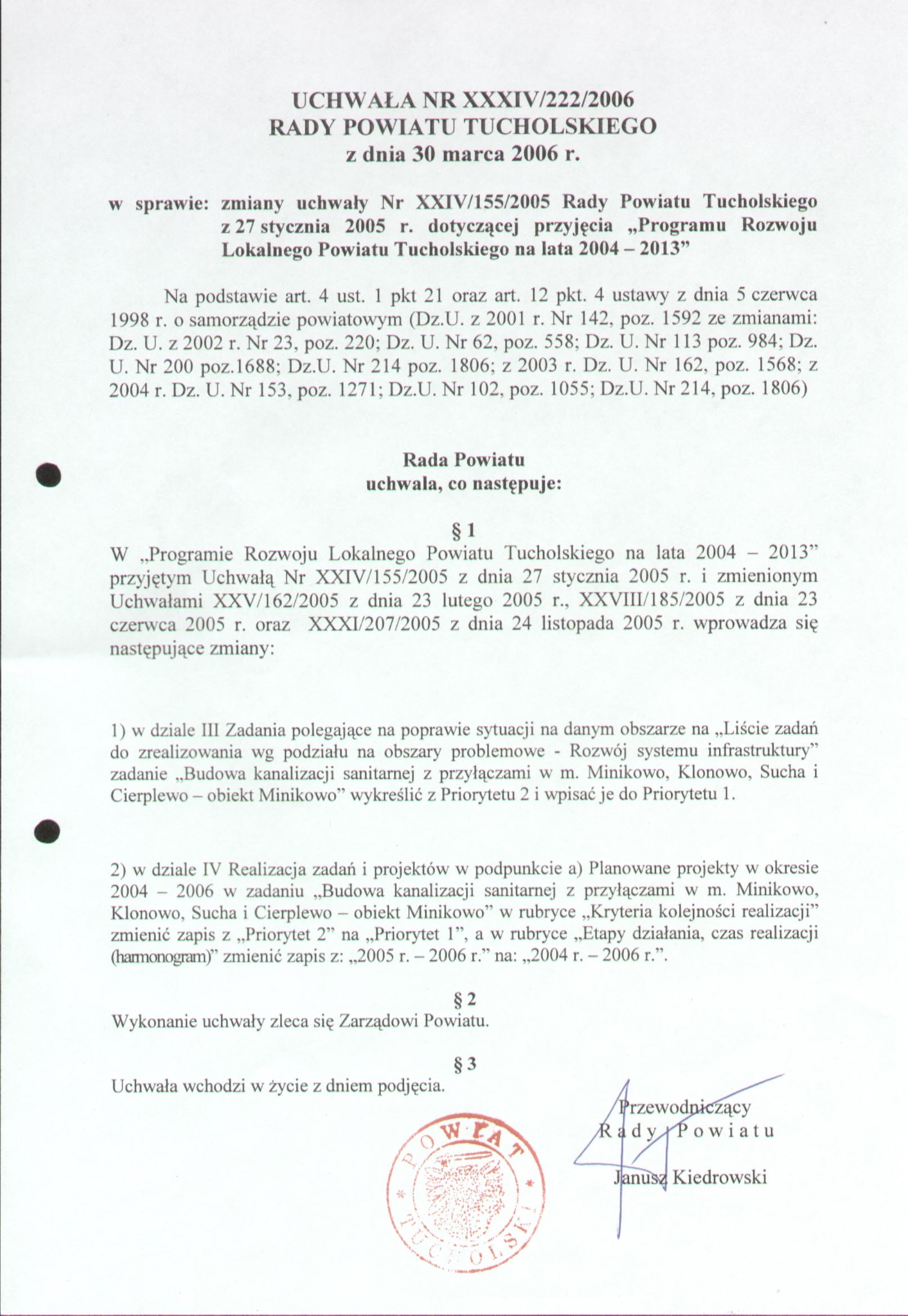 w sprawie zmiany uchwały Nr XXIV/155/2005 Rady Powiatu Tucholskiego z 27 stycznia 2005 r. dotyczącej przyjęcia „Programu Rozwoju Lokalnego Powiatu Tucholskiego na lata 2004 – 2013”